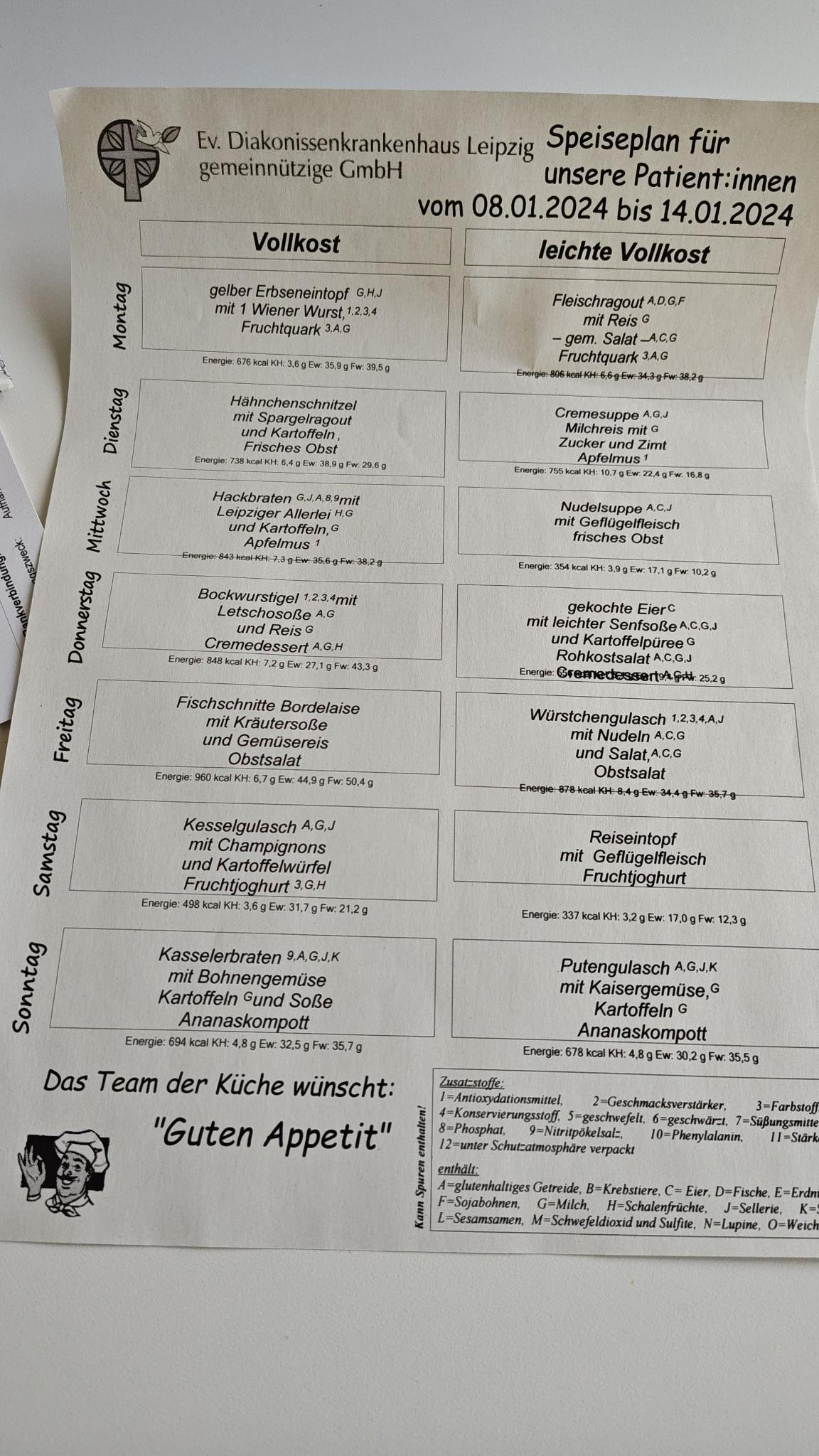 Abgesehen vom zu vielen Fleisch, die Kalorien haben es ja teilweise echt in sich, auch bei der leichten Vollkost. Dafür, dass man im Krankenhaus in der Regel recht wenig Bewegung hat, hauen die Sachen echt rein…