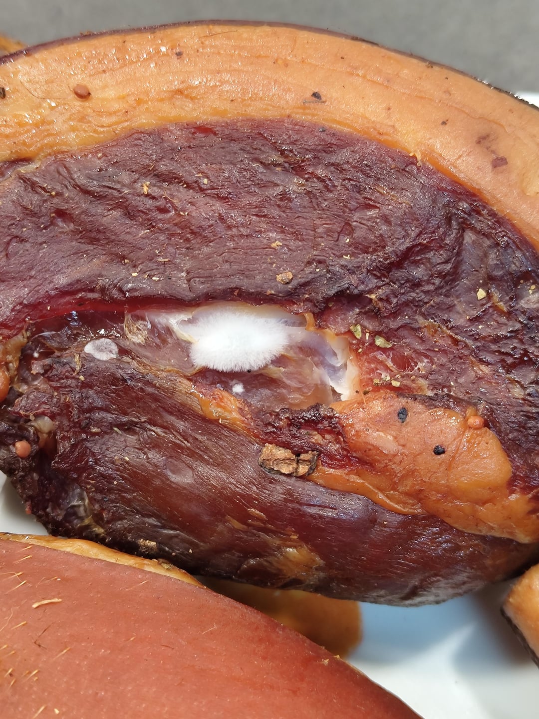 Ist dieser Schimmel essbar oder sollte der Schinken entsorgt werden?