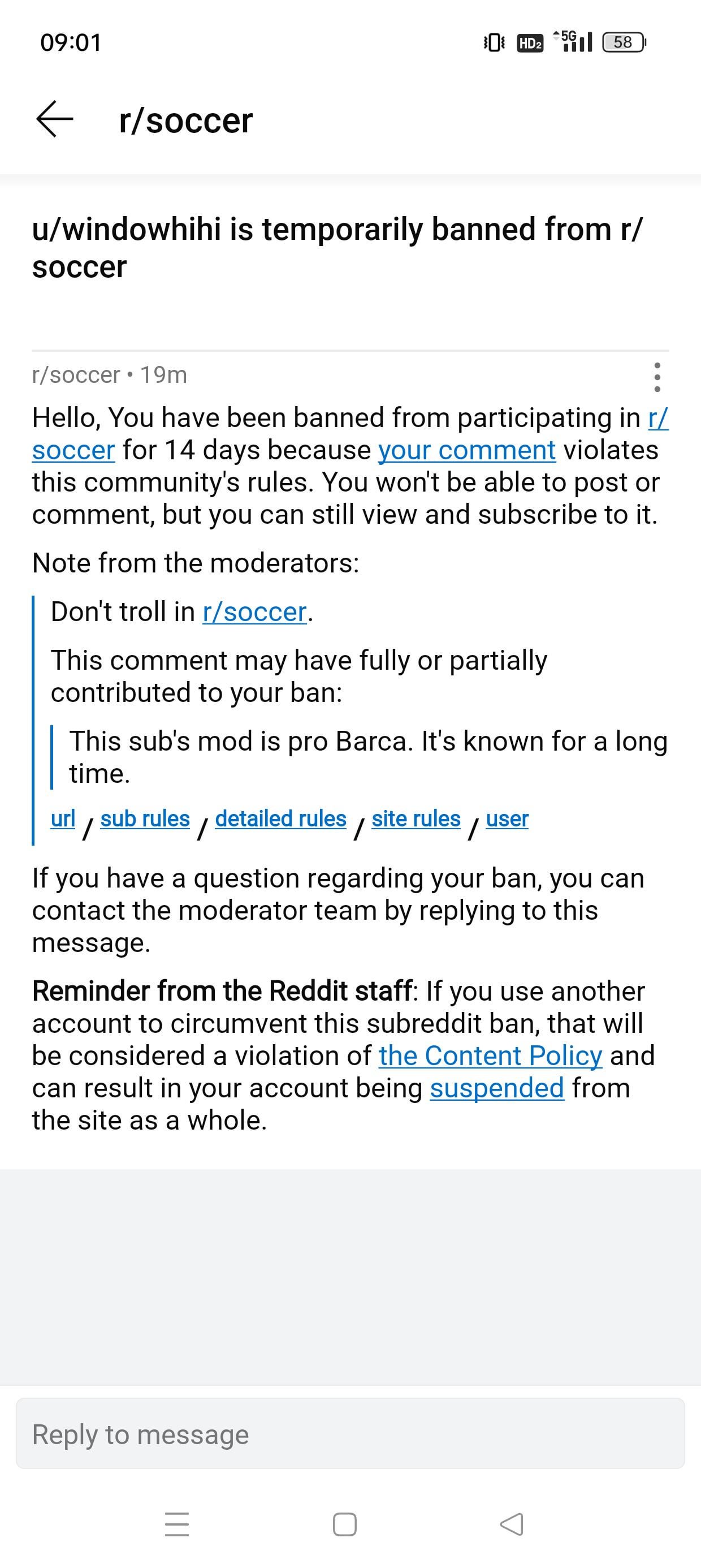 I got perma banned for calling the mods in r/soccer idiots