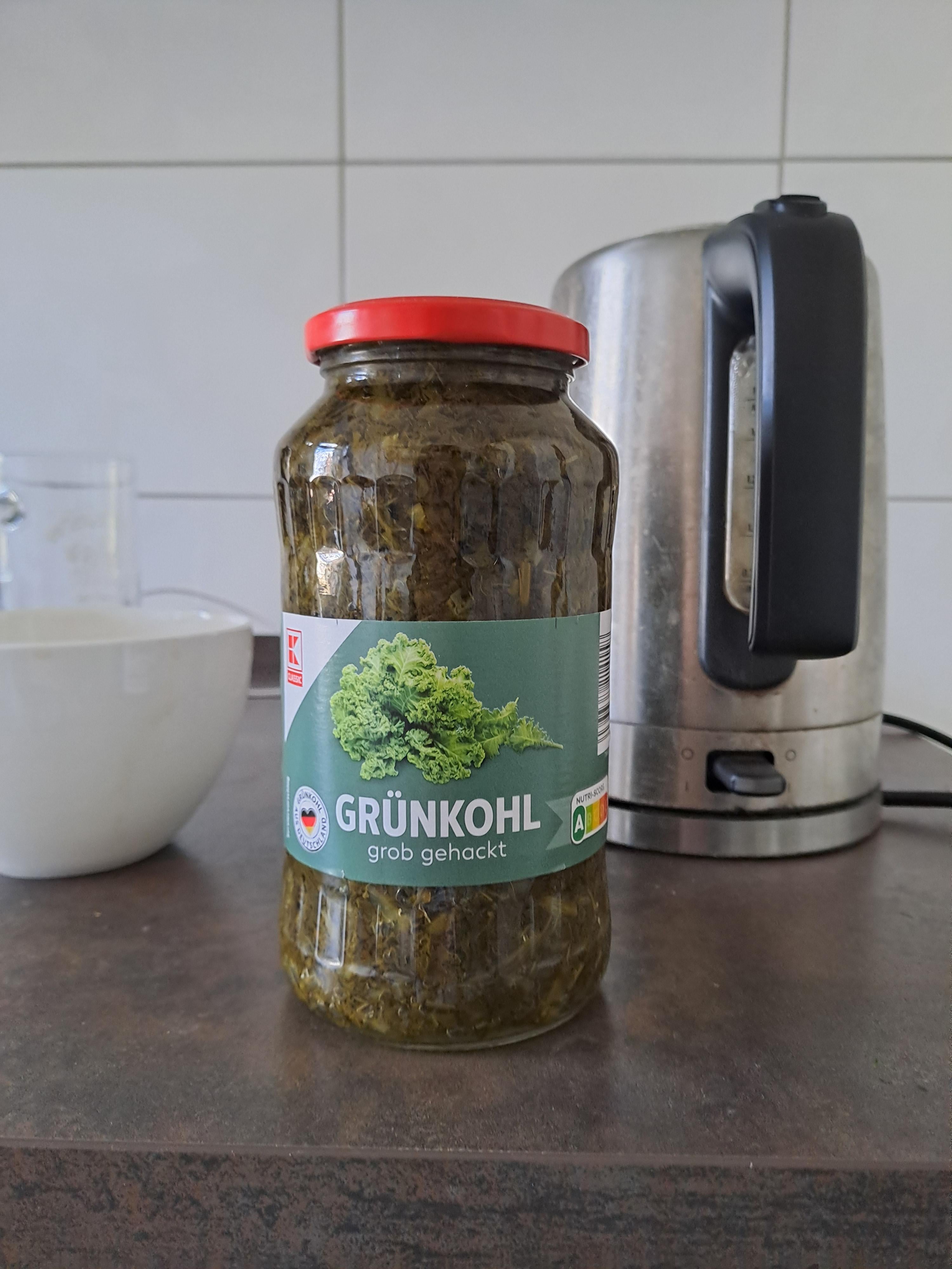 Mit dem Glas kann ich dir leider nicht weiter helfen. Ich empfehle dir, falls du in norddeutschland wohnst, zur fleischtheke deines supermarktes zu gehen und dort nach grünkohl zu fragen. Die haben den oft in selbst-abgefüllten plastikschläuchen. Diese ist frischer und bereits vorgekocht und hat schon minimal kartoffeln und fleisch drin.