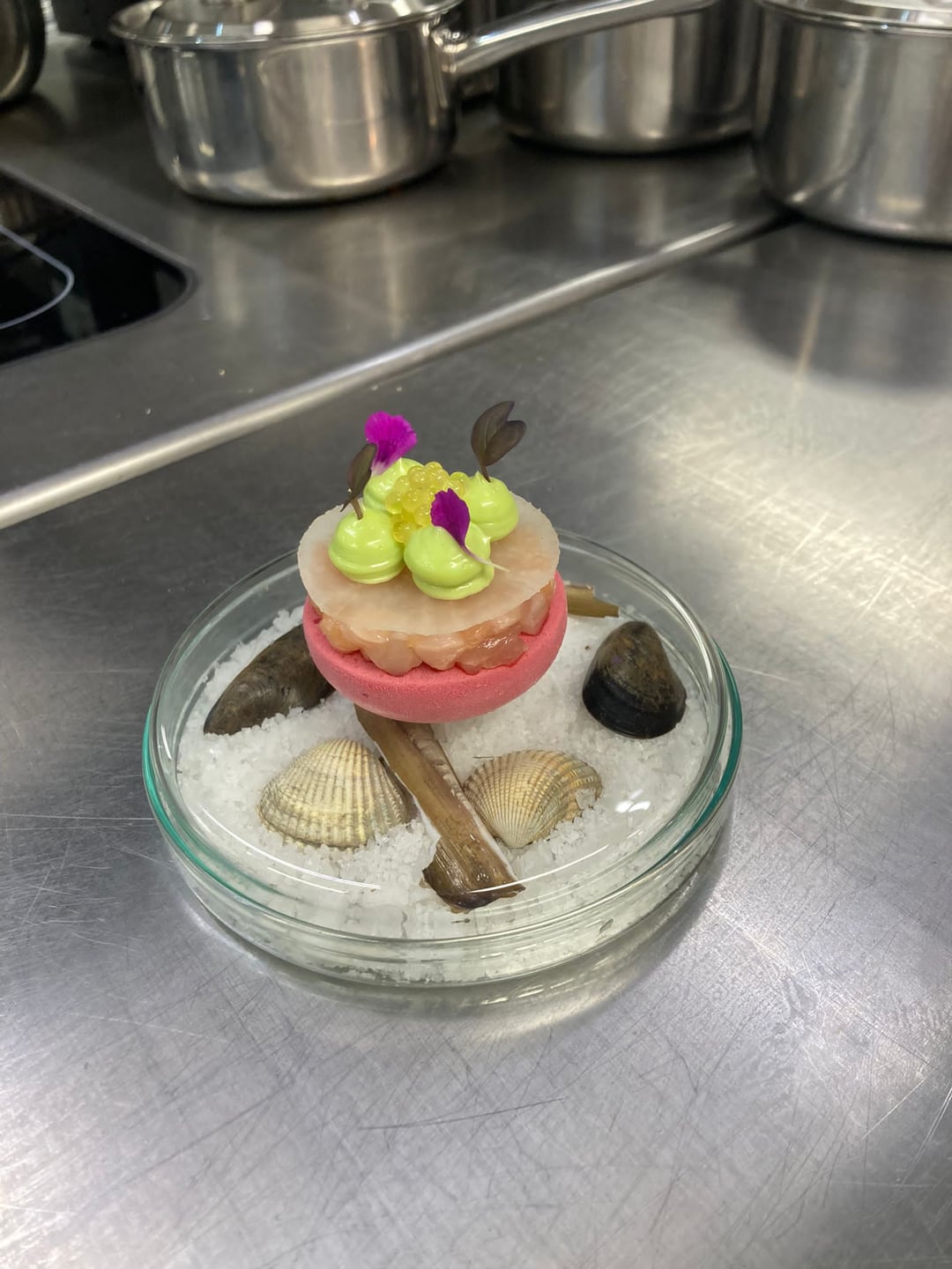 Falls ehrliches Feedback erwünscht ist: Ich wäre (als zahlender Gast im fine dining) von der Anrichte ein bisschen abgeturnt: Petrischale mit Salz und kaputter alter Schwertmuschelschale? Was soll das?