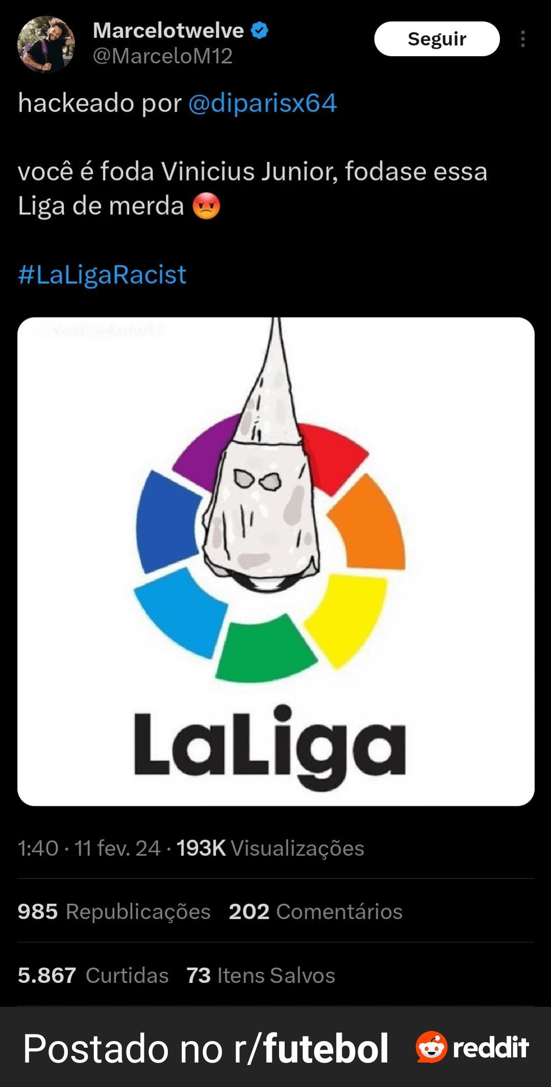 The pointy hat outfit has no racist meaning in Spain though, so it was probably a hack and not a “hack”, since Marcelo would be aware of that.