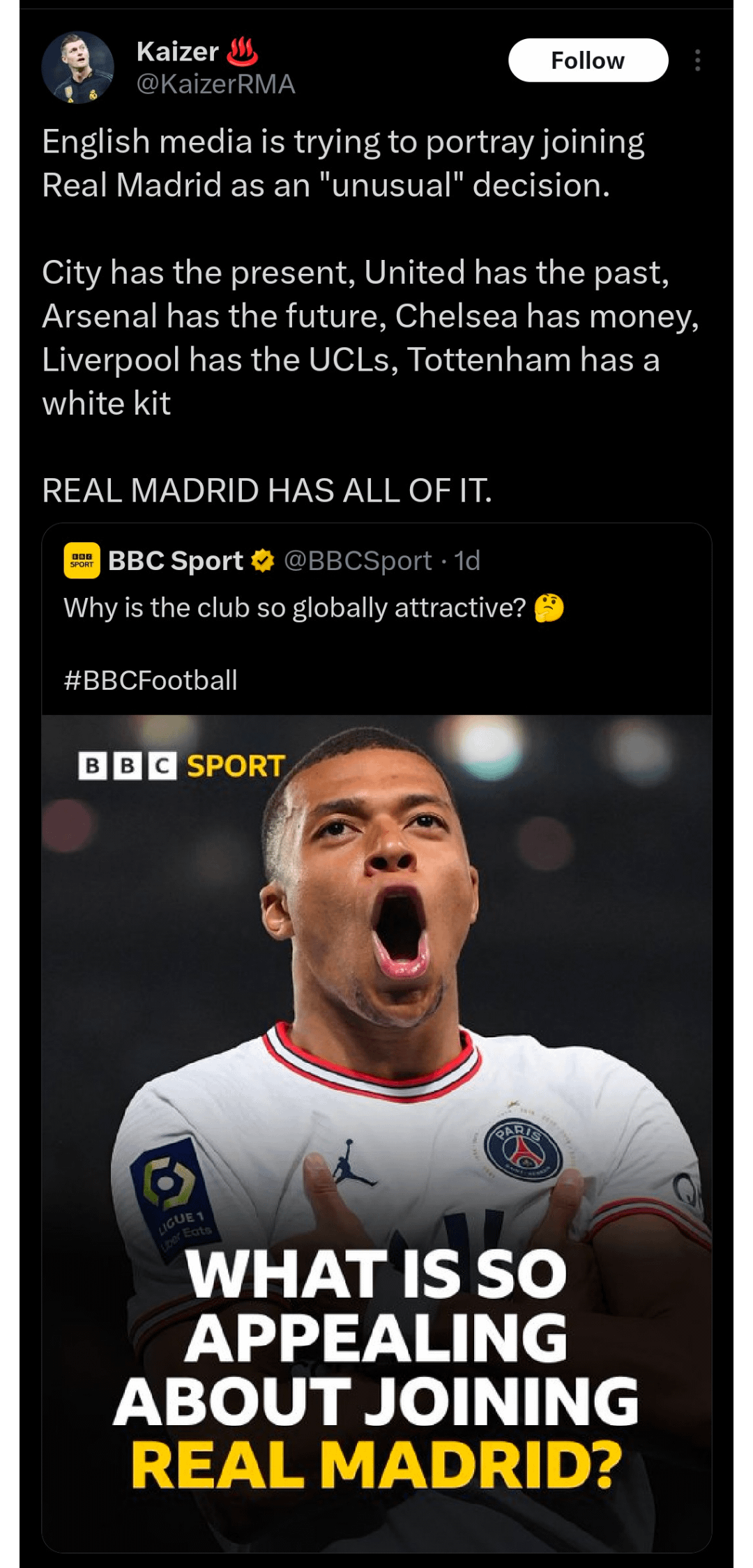 preach Real Madrid is a royalty that non of the english sides will ever at par