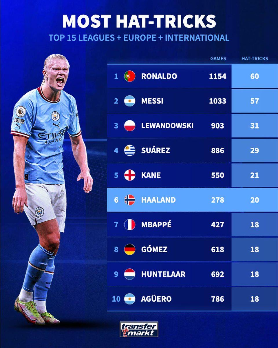 Cristiano Ronaldo has scored most hat-tricks (60) in history among players from Top 15 Leagues (club & country)