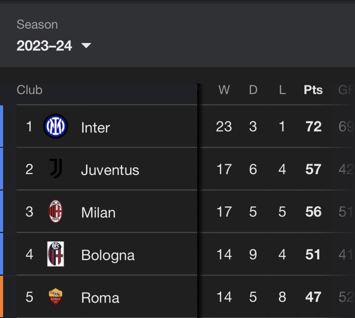 15 point is insane, at some point this season there’s many talk about how this season Scudetto will be decided on the last days (Gresko vs Lazio Vietnam flashback) so to having these kind of advantage is huge and still feel unreal