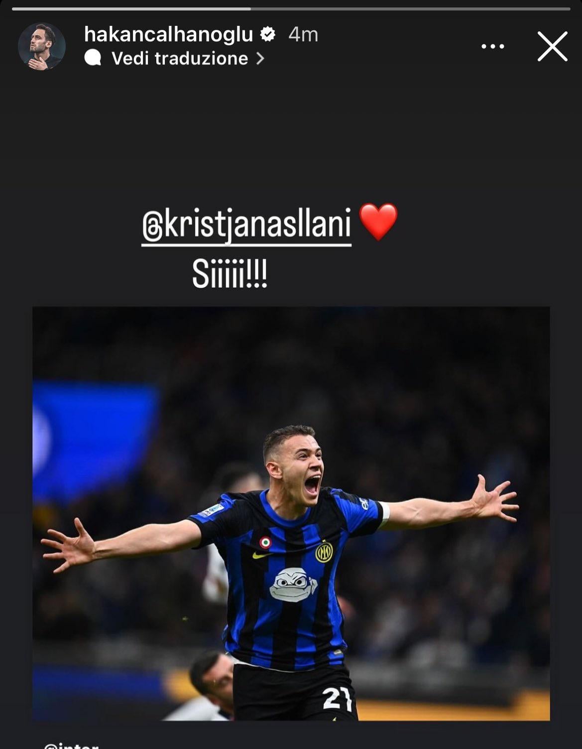 Hakan congratulating Asllani on Instagram 🖤💙