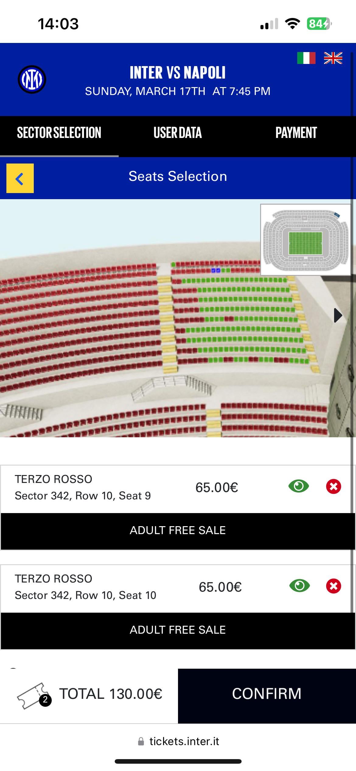 Define good… They are probably within the worst seats of S Siro, which is still better than most other seats around Italian stadia… Especially since you are watching the team in black and blue. Not obstructions per se’, but you don’t get a lot of options if you are not early or willing to spend more cash nowadays…