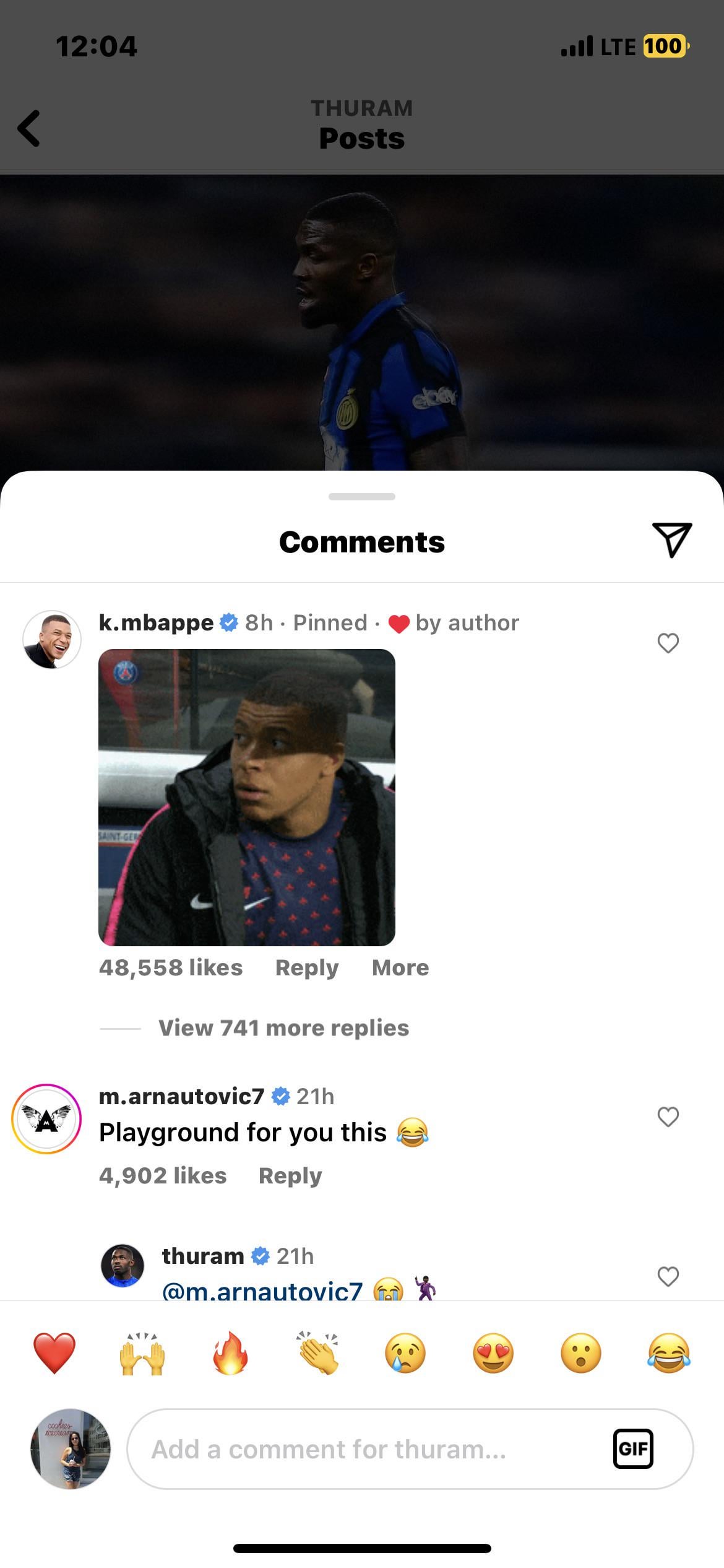 Mbappe posted a comment on Marcus’s IG Post (Marko commented as well) 👀👀👀 by lala_b11 Tags:F.C. Internazionale MilanoFC Inter MilanFootballInter MilanItalian FootballitalySoccer 5 comments Done deal. Stop Calma When Juan commented under Samirs post we started speculating that hes coming. And he arrived. Inzaghi better start learning 3-4-3 The best player in the world at the moment and Mbappe commented on Thuram’s post. Leave a ReplyYou must be logged in to post a comment.