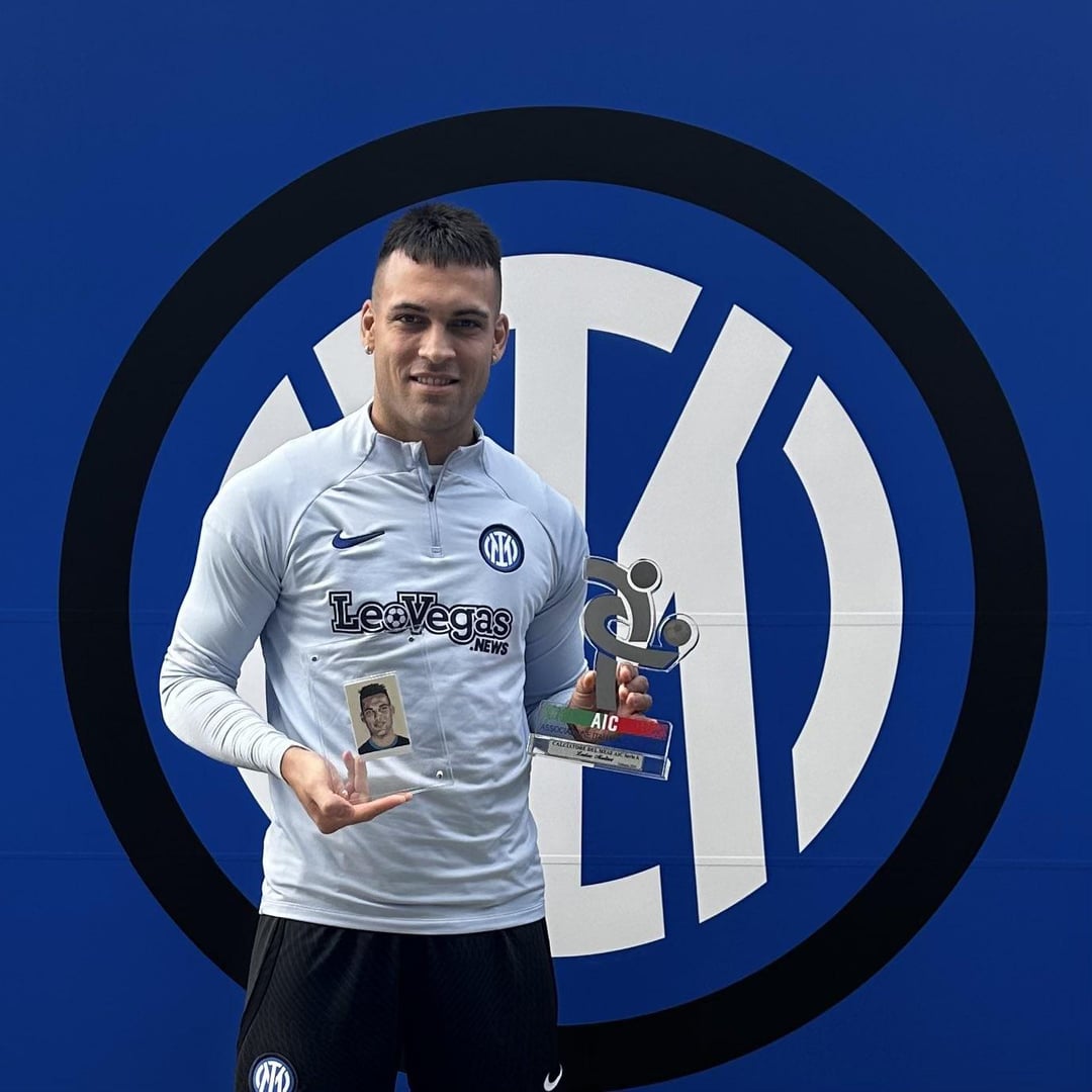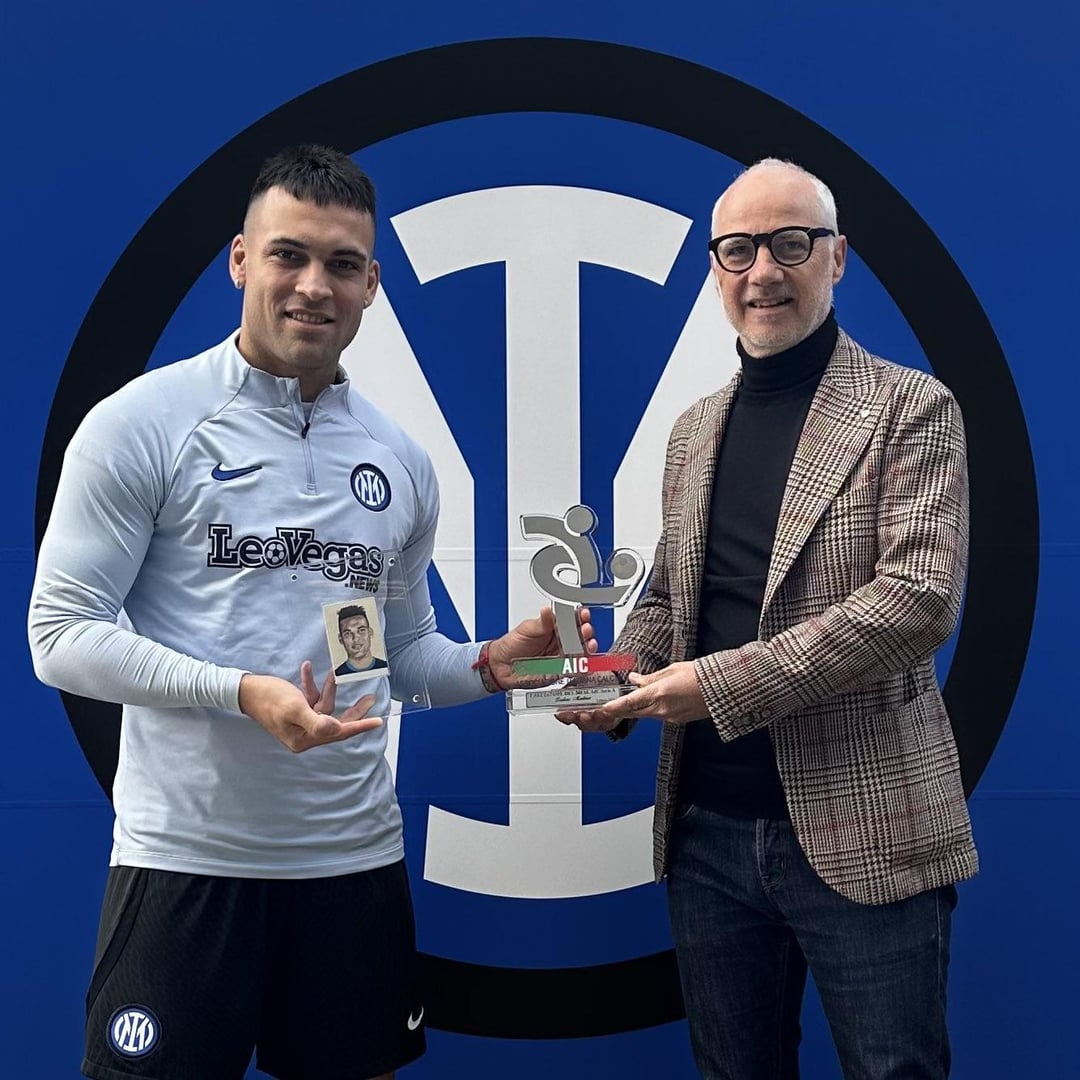 [AIC] Lautaro Martinez, February “Footballer of the Month” for Serie A, awarded by DG Gianni Grazioli at the Suning Training Center in Appiano Gentile.