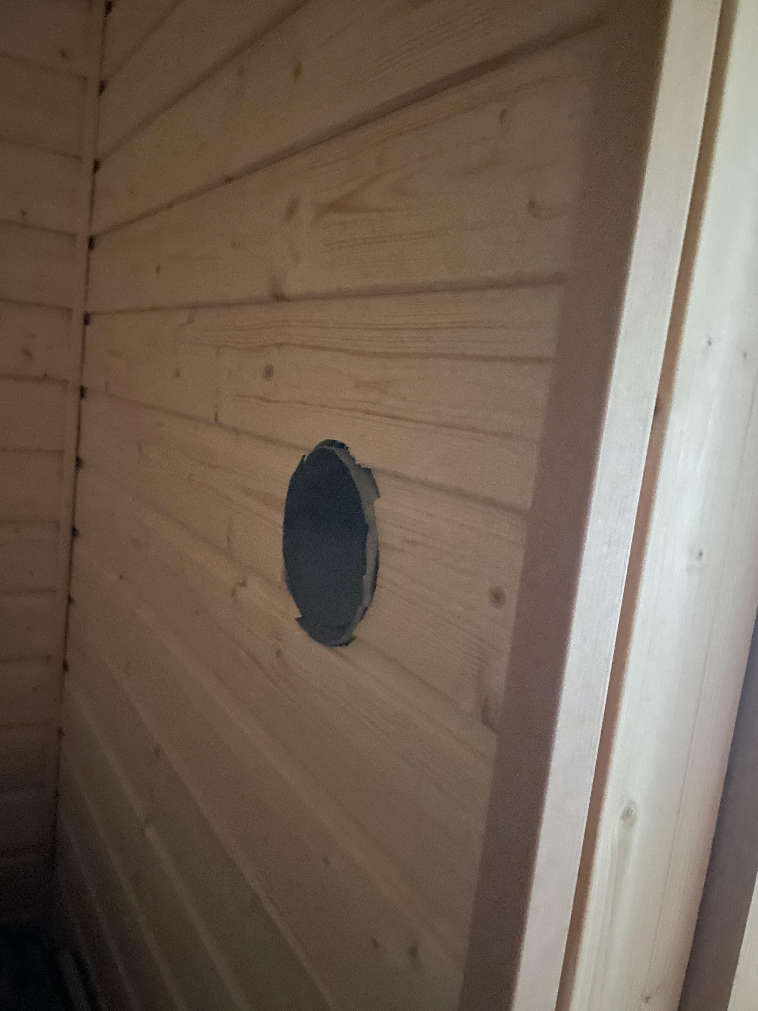 Ideally there is fresh air coming from somewhere near the stove, and the little vent in the roof is on opposite side of the sauna compared to the stove.