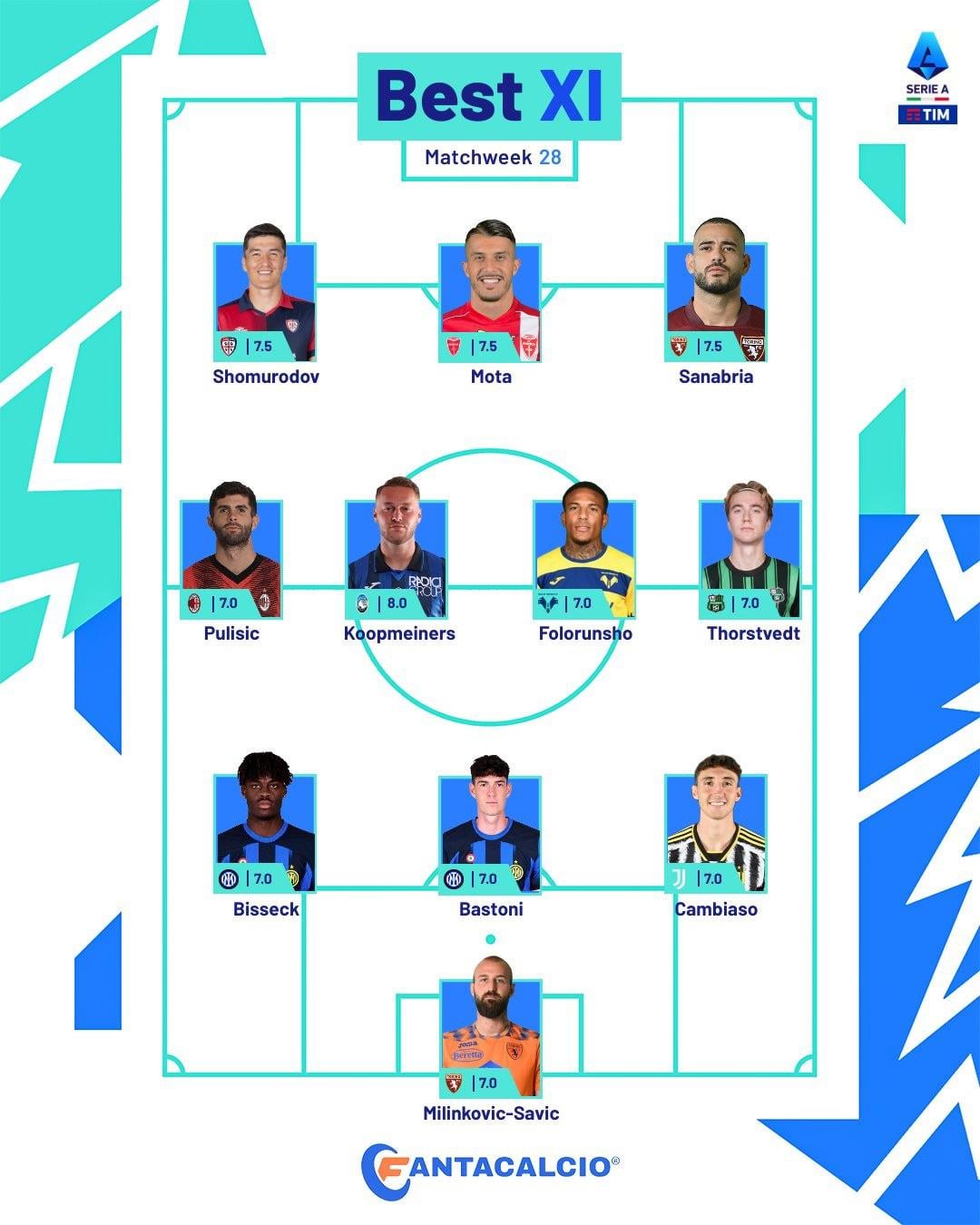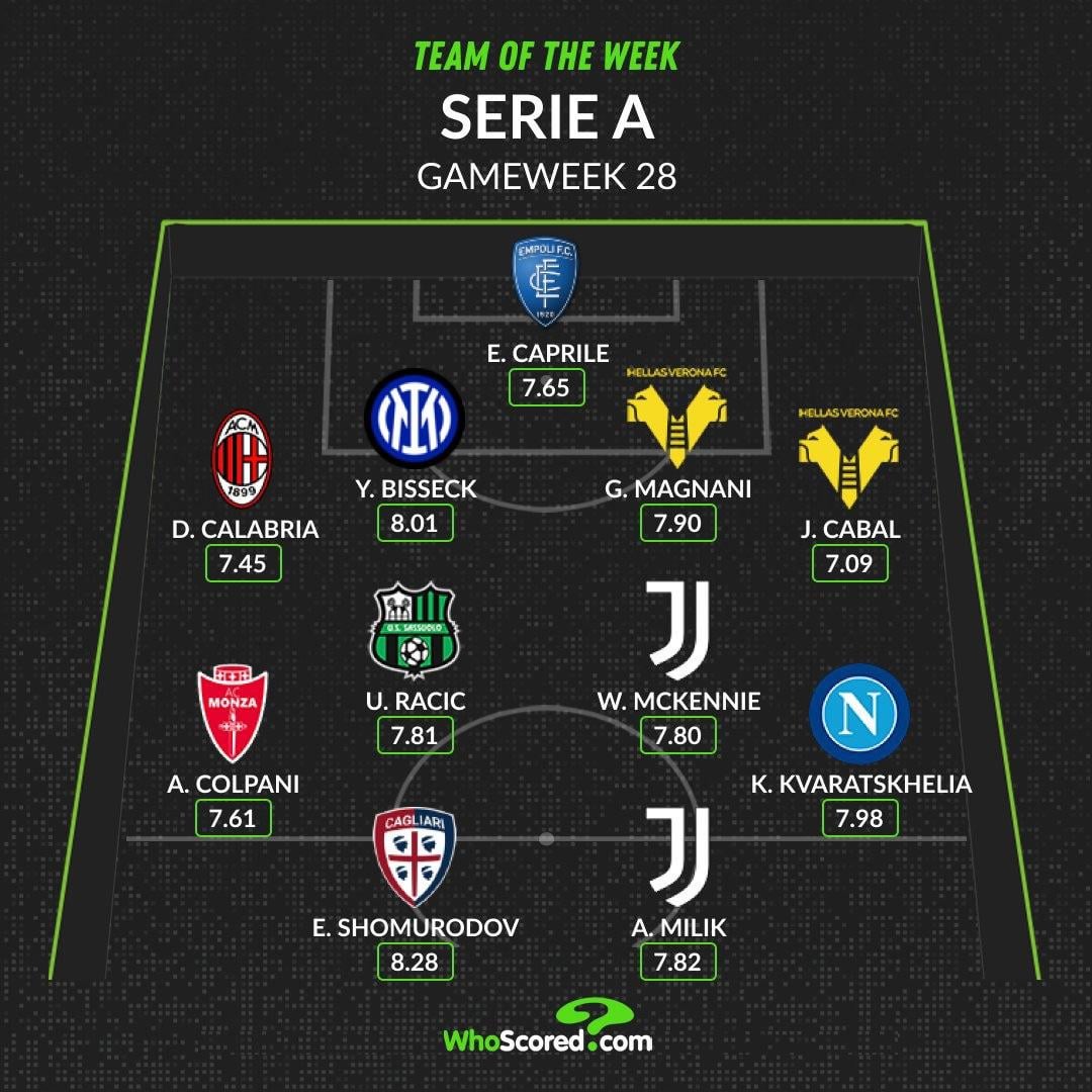 Yann Bisseck and Alessandro Bastoni was included in the Serie A Best XI for Matchweek 28. Yann Bisseck was also included in the WhoScored Serie A Team of the Week! ⚫️🔵