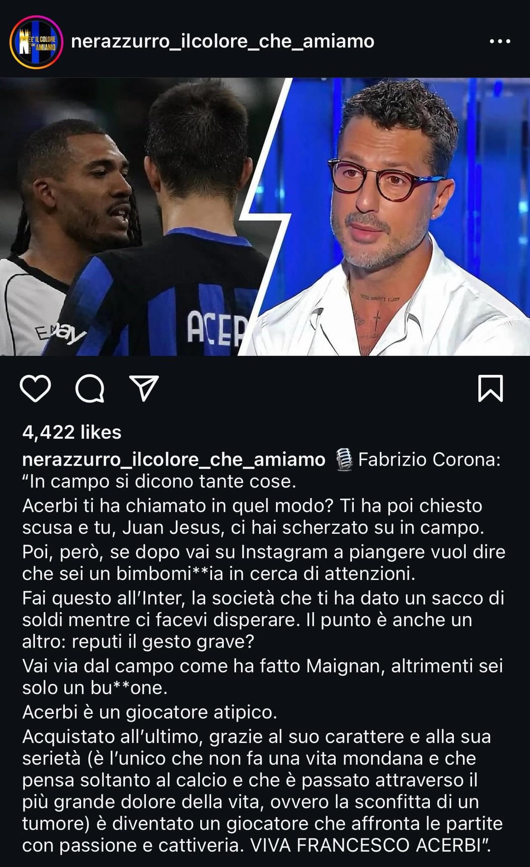 The fans in the comments are mostly on Acerbi’s side. I’m Chinese, so unfortunately I’ve had my fair share of racism in Italy, but I’m all for forgiveness though and giving second opportunities. My motto is “love triumphs over all”. We all make mistakes and say stupid things at times. I know not everybody will agree, which is completely fine. That’s just my 2 cents. Would you give Acerbi a second opportunity? Maybe a slap in the face and kick in the balls will take the Nazio out of him.