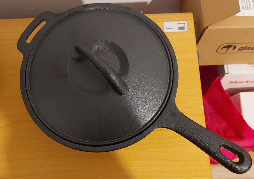 Nun reibst du Topf und Deckel mit einem Zewa mit Sonnenblumenöl ein. Danach mit Zewa oder Küchenhandtuch so viel Öl wider runter reiben dass es nichtmehr speckig glänzt. Das ist wichtig damit kein Feuer entsteht und die Patina gleichmäßig wird.