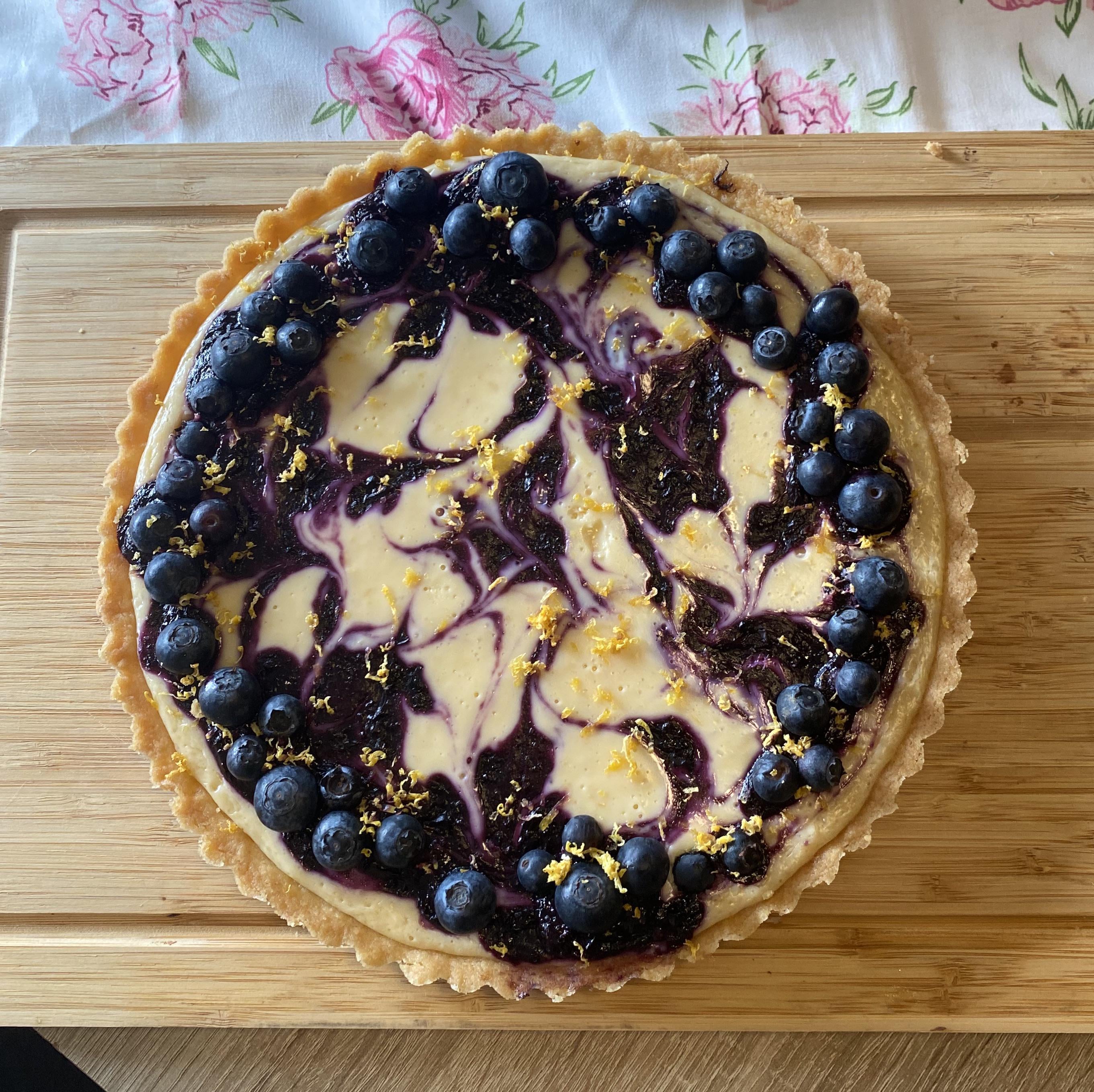 Rezept und Tarteform zum ersten mal probiert, easy und hübsch auf dem Tisch. Für unseren Geschmack etwas zu süß, ein wenig ungesüßte geschlagene Sahne hätte bestimmt gut gepasst 🙂 Rezept: https://sallysbakingaddiction.com/lemon-blueberry-tart/