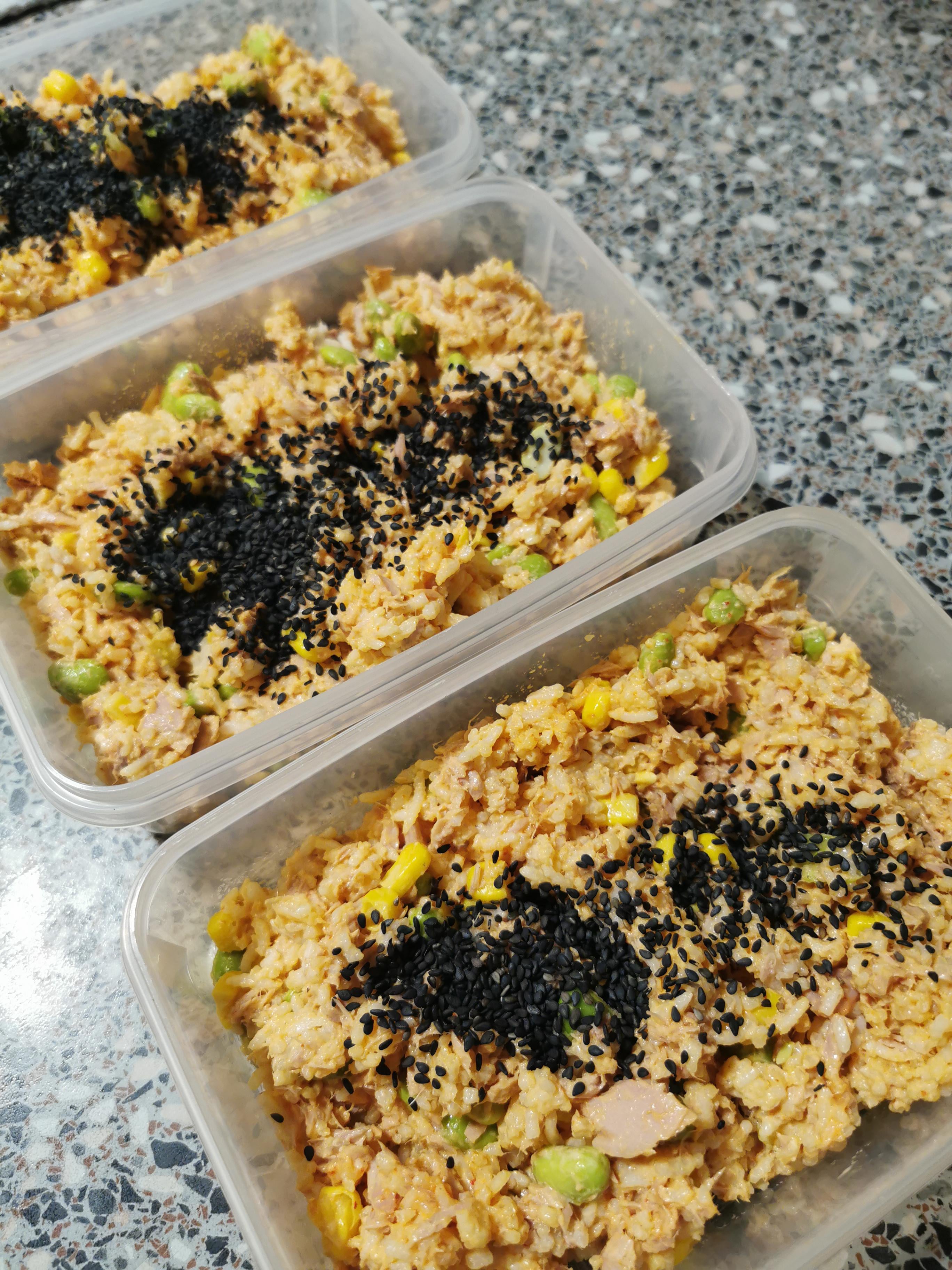 2. Thunfisch, Mayo und Reis sind einfach so eine gute Kombi. Ich tu die Thunfisch-Mischung lieber auf den Reis drauf statt alles durchzumischen, dann noch etwas Chiliöl drauf, Gurke, Edamame und Frühlingszwiebeln dazu und es ist perfekt.