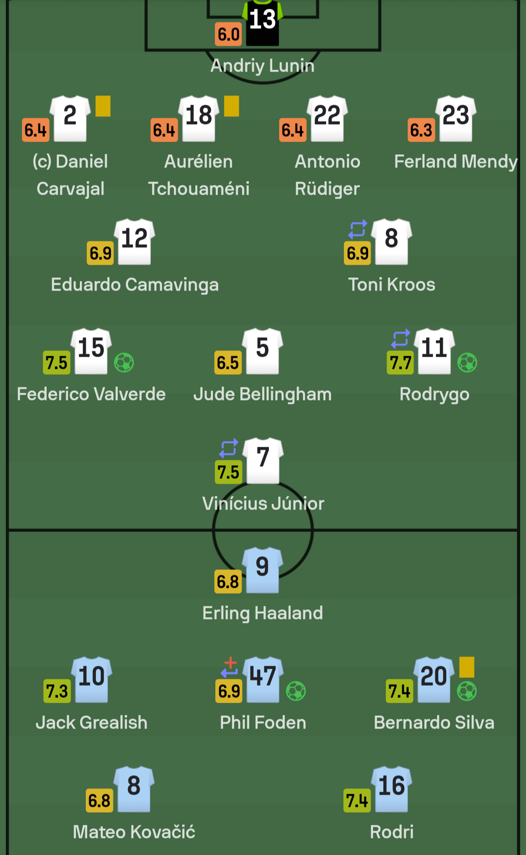 8. True that Rudiger pocketed Haland but his job was to prevent opposition from scoring, yeah i admit he was not the only one responsible for it, but being the lone certified central defender in the lineup, he has something more to do i feel but he had a wonderful game, Foden wasn’t seen in the entire game but that top notch goal helped him win the MVP, I feel Bernando and Valverde both had a better game than him