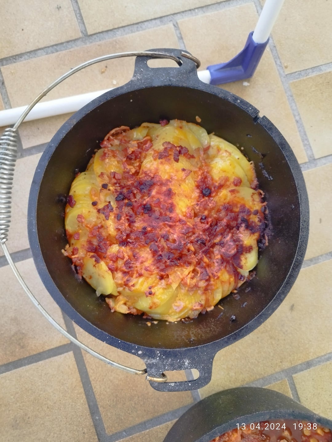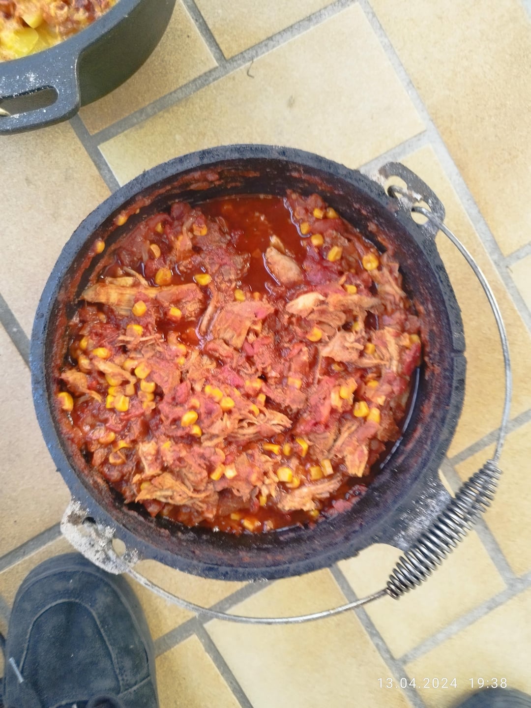 Bei uns gabs gestern Meat Dripping (Pulled Pork für ungeduldige)mit Kartoffeln mit Speck, Zwiebeln und bisschen Cheddar, beides aus dem Dutch Oven. War köstlich.
