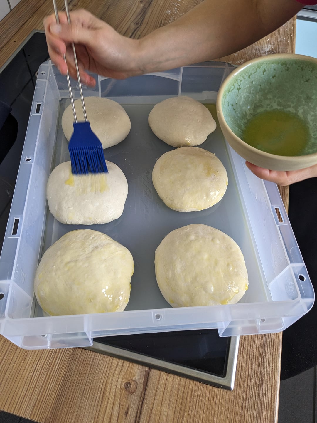 Meine Teiglinge schlafen noch, kommen heute Abend aber auf den Gasgrill.
