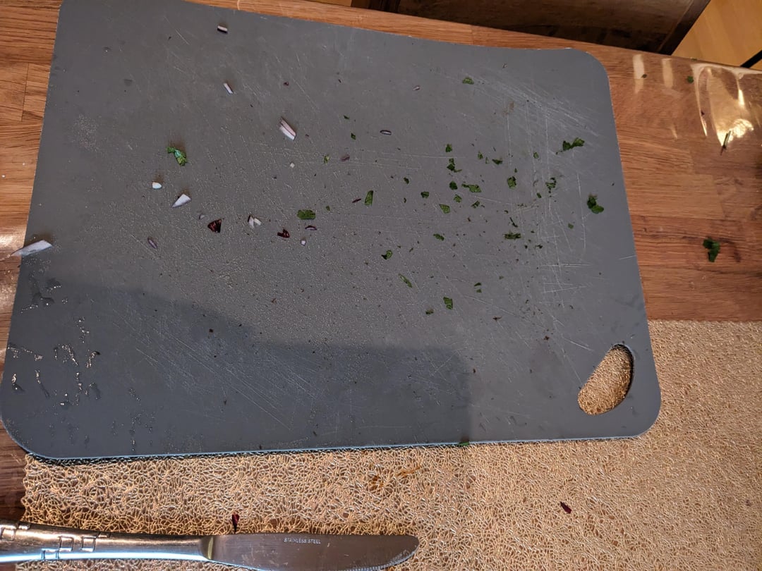 8. [Hier sind ein paar Tipps. Die Stelle bei 2:25 ist für die meisten relevant und direkt darauf das Hacken von Kräutern](https://youtu.be/4xLHzbizfd0?t=145). Ich habe neben meinem Schneidebrett einfach so ein Teigschneider und nehme dies, um die Produkte zu sammeln.