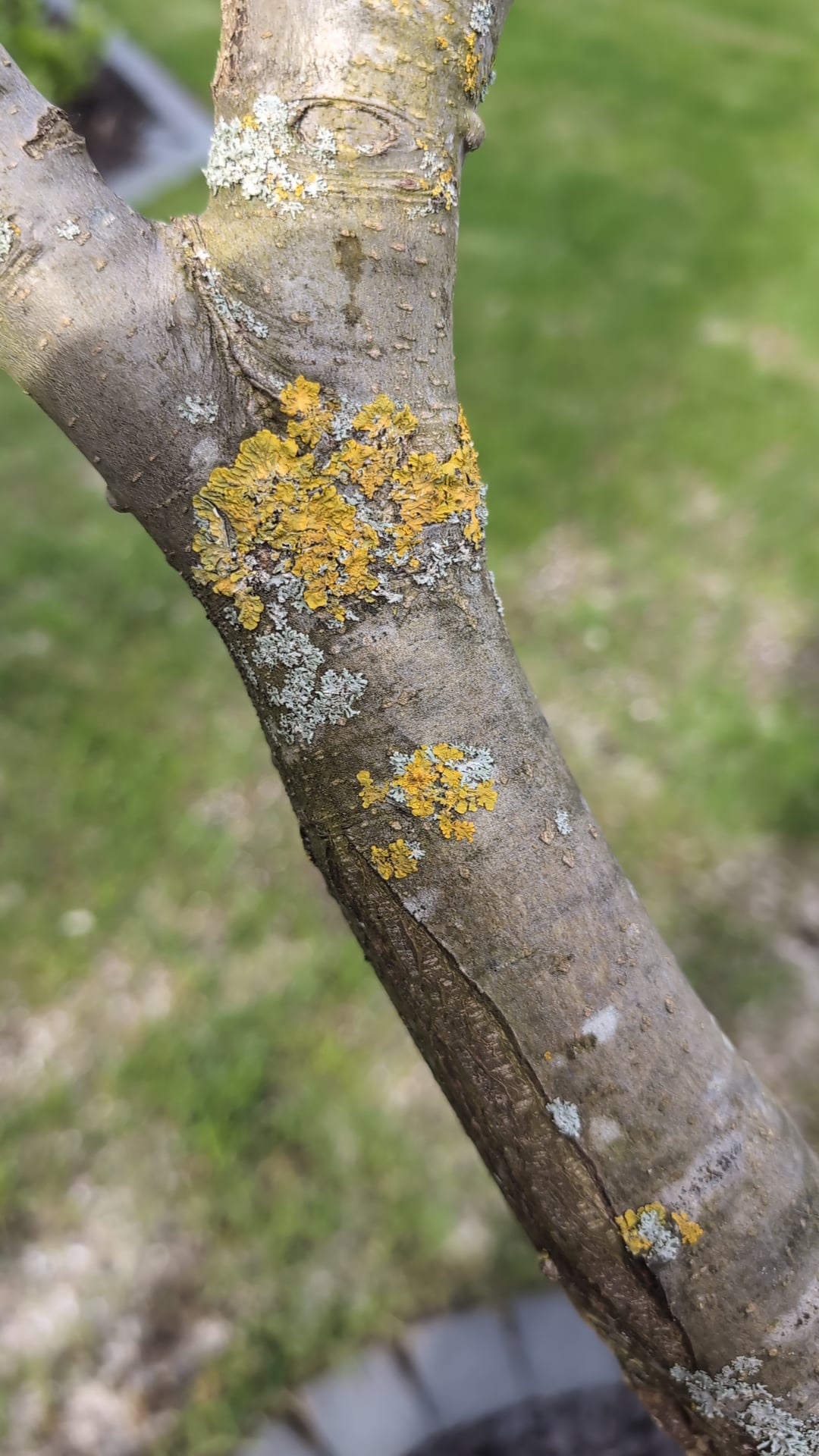 Du hast vermutlich Monilia, Monilia-Krankheit lässt die Triebspitzen absterben und wird deshalb auch Spitzendürre genannt. Die gelbe Flechte macht dem Baum nichts. Edit: Baumschule Schreiber hat dazu ein Video auf YT gemacht.
