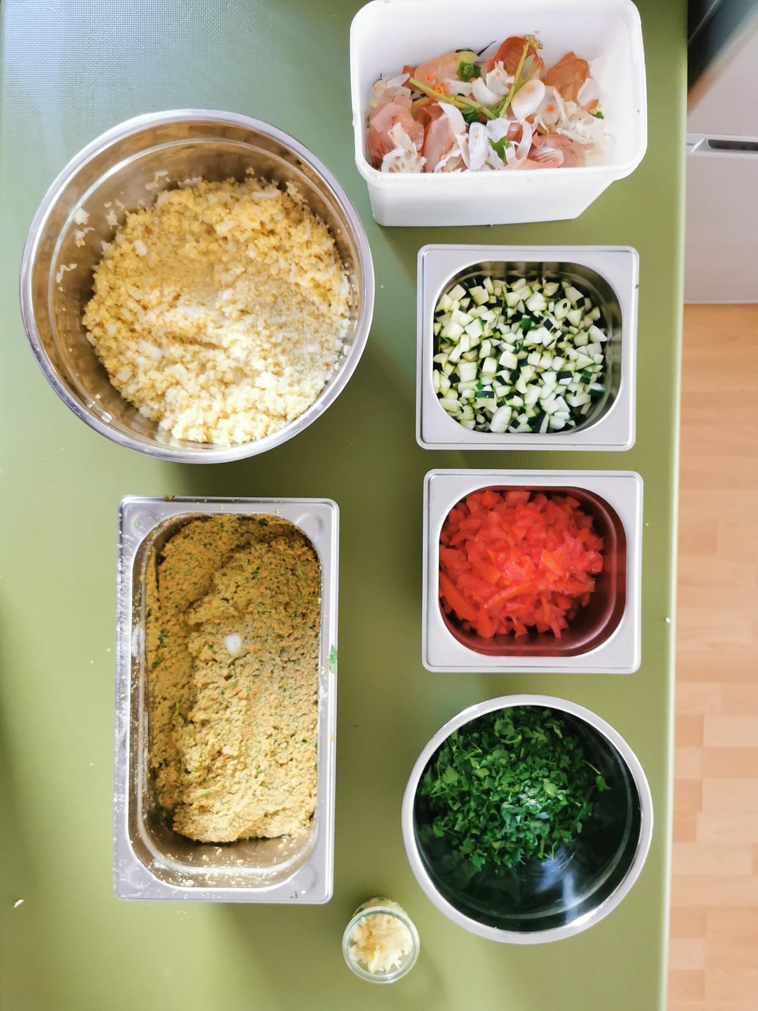 Mir ist bewusst das Tabouleh eigentlich mit Gurke ist aber mit Zucchini hält sich besser.