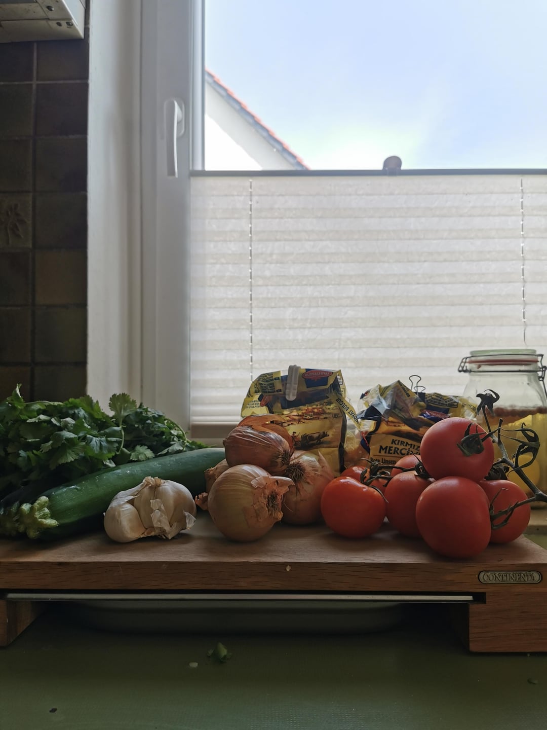 -Zucchini(412 g) und Tomaten(964 g) entkernen und klein würfeln