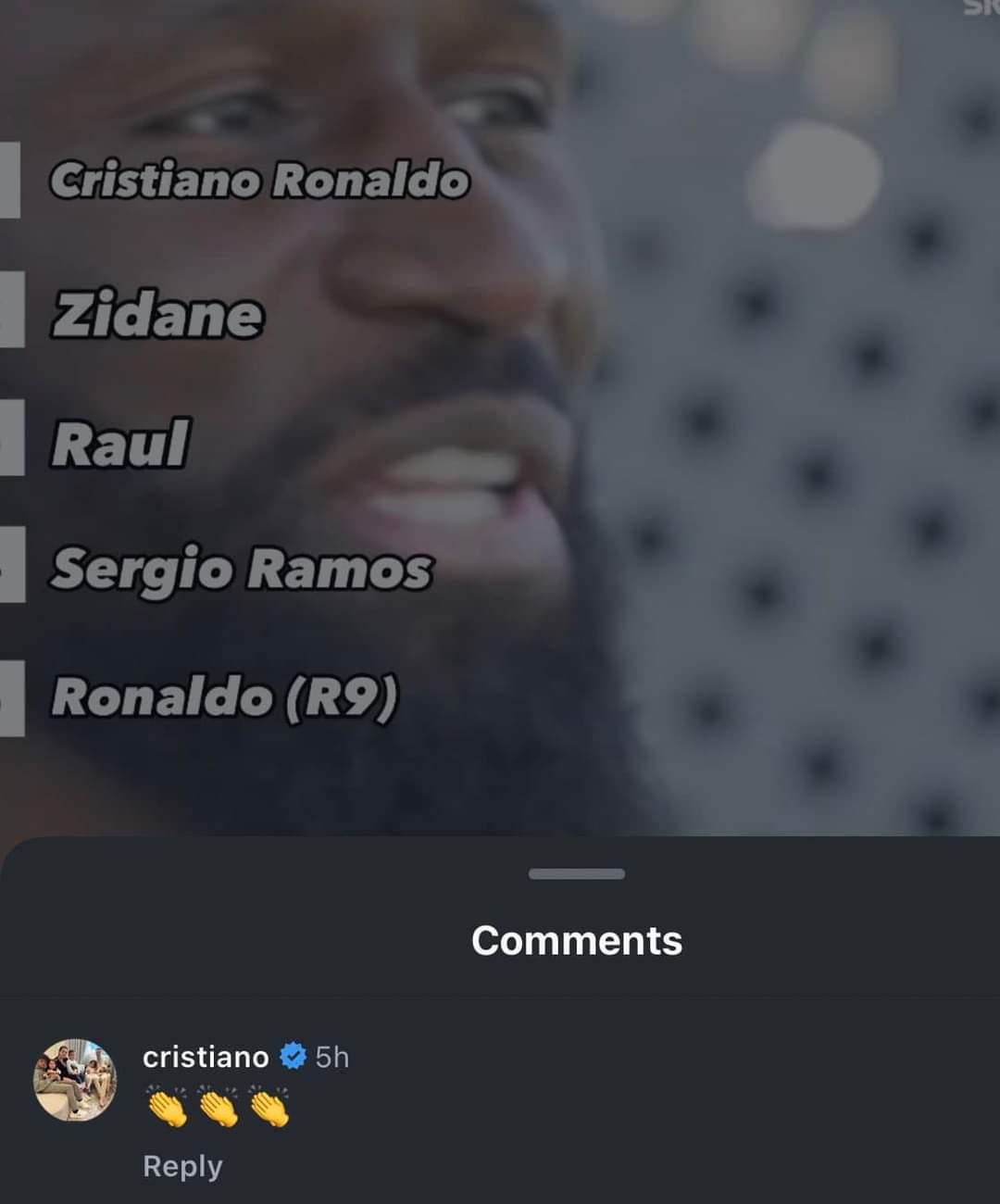 Cristiano Ronaldo replying to Rüdiger’s Real Madrid player rankings. by EffectiveTie3144 Tags:FootballHala MadridLa LigaReal MadridReal Madrid CFSoccerspainSpanish Soccer 1 comment Hala Madrid Leave a ReplyYou must be logged in to post a comment.