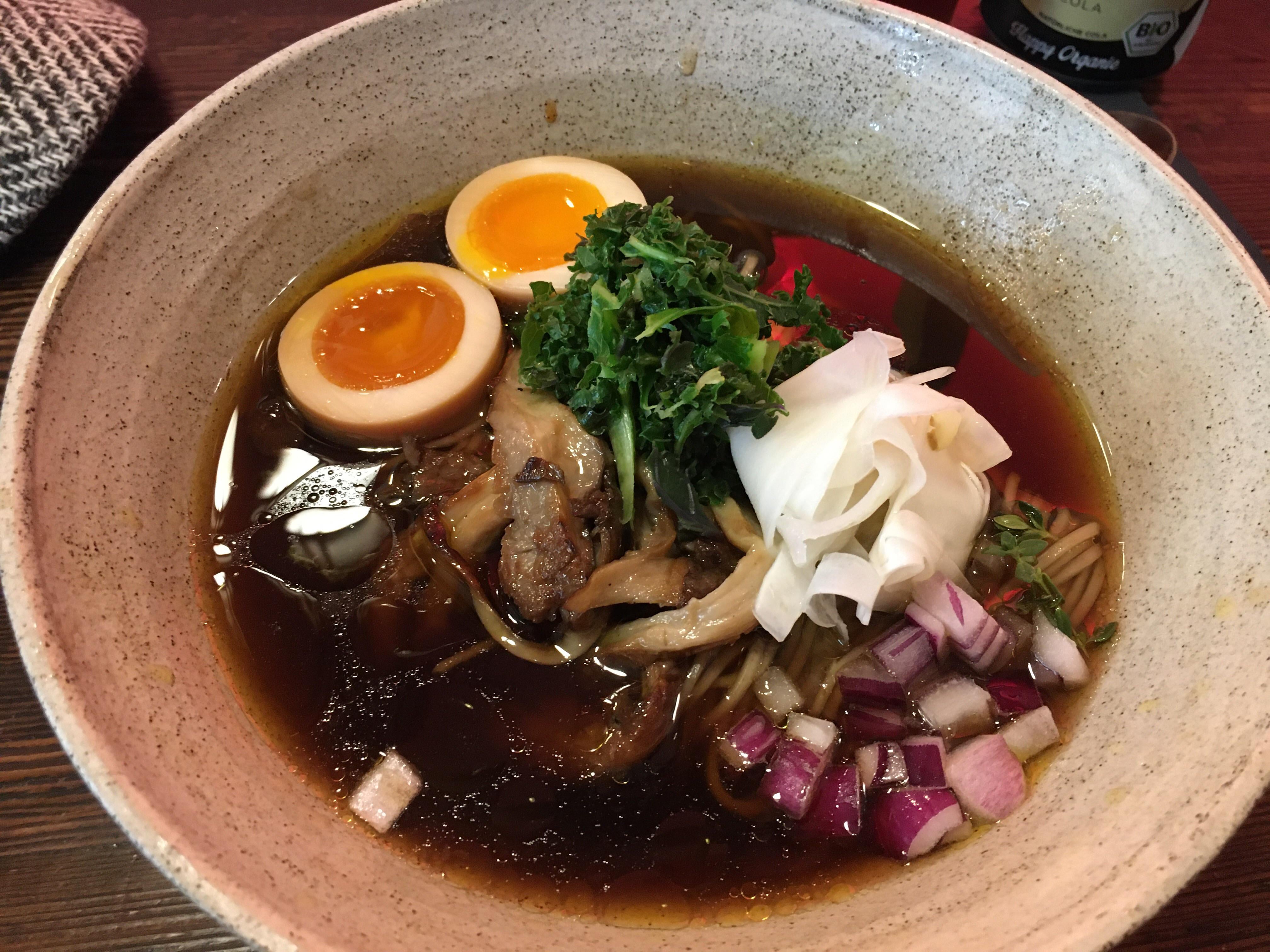 Es war sehr lecker. Der Laden ist recht klein und fühlt sich an wie ein typisches Ramen Restaurant. Man kann keinen Tisch vorbestellen sondern kommt da hin, stellt sich an und wartet bis man einen Platz bekommt. Ich habe so 15 Minuten gewartet und kam nach der ersten Mittagswelle an, was ganz gut war.
