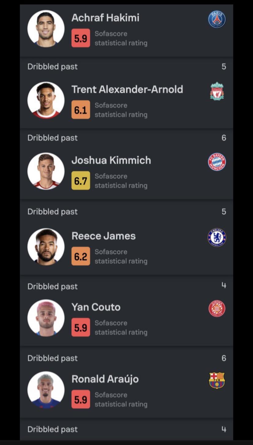 That araujo one is fake i guess. Which match did he was dribbled past 6 times?
