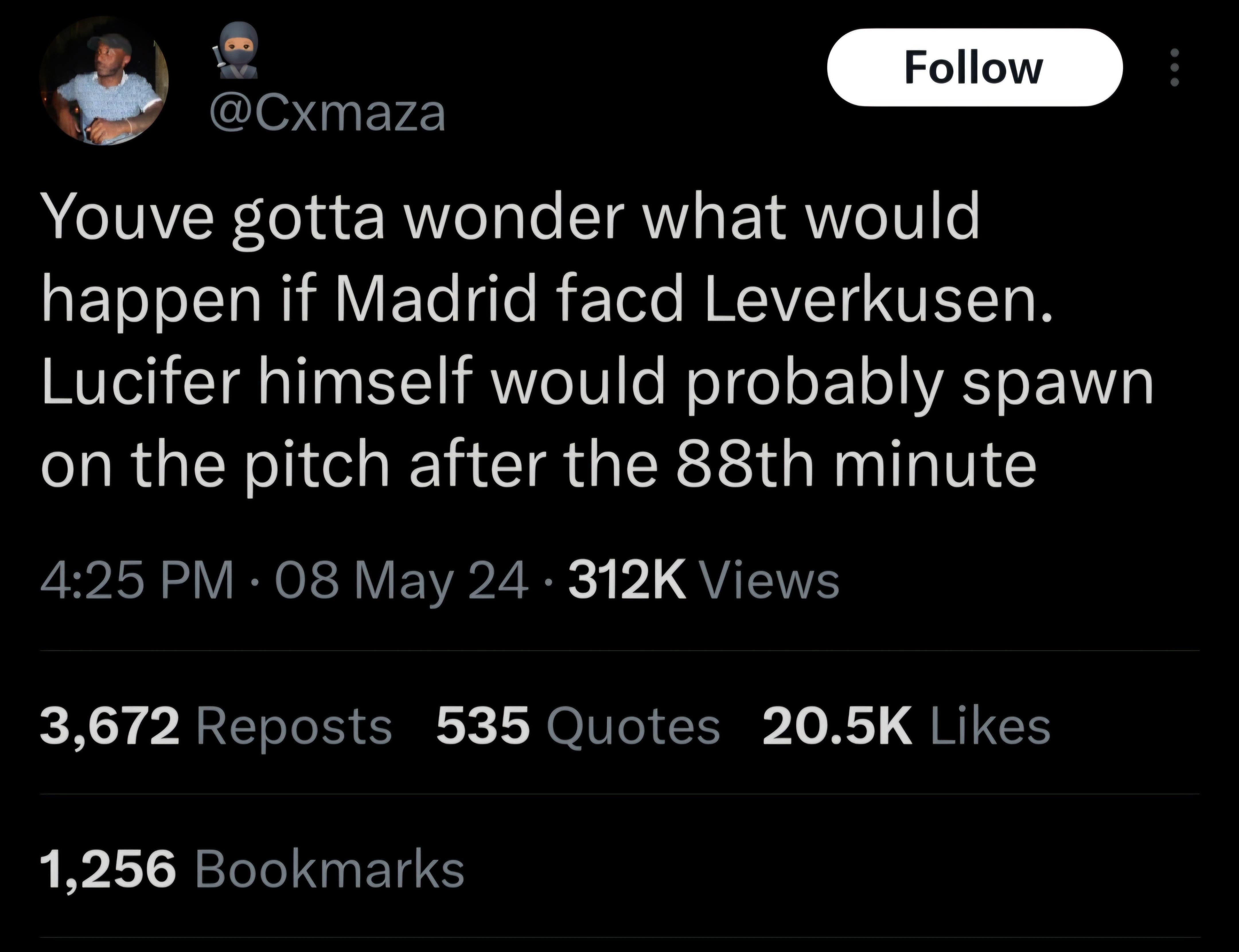 The real question is what will happen when, in a few years, Xabi Alonso becomes our coach. We will be able to skip the first 95 minutes of every match, as they won’t be relevant at all.