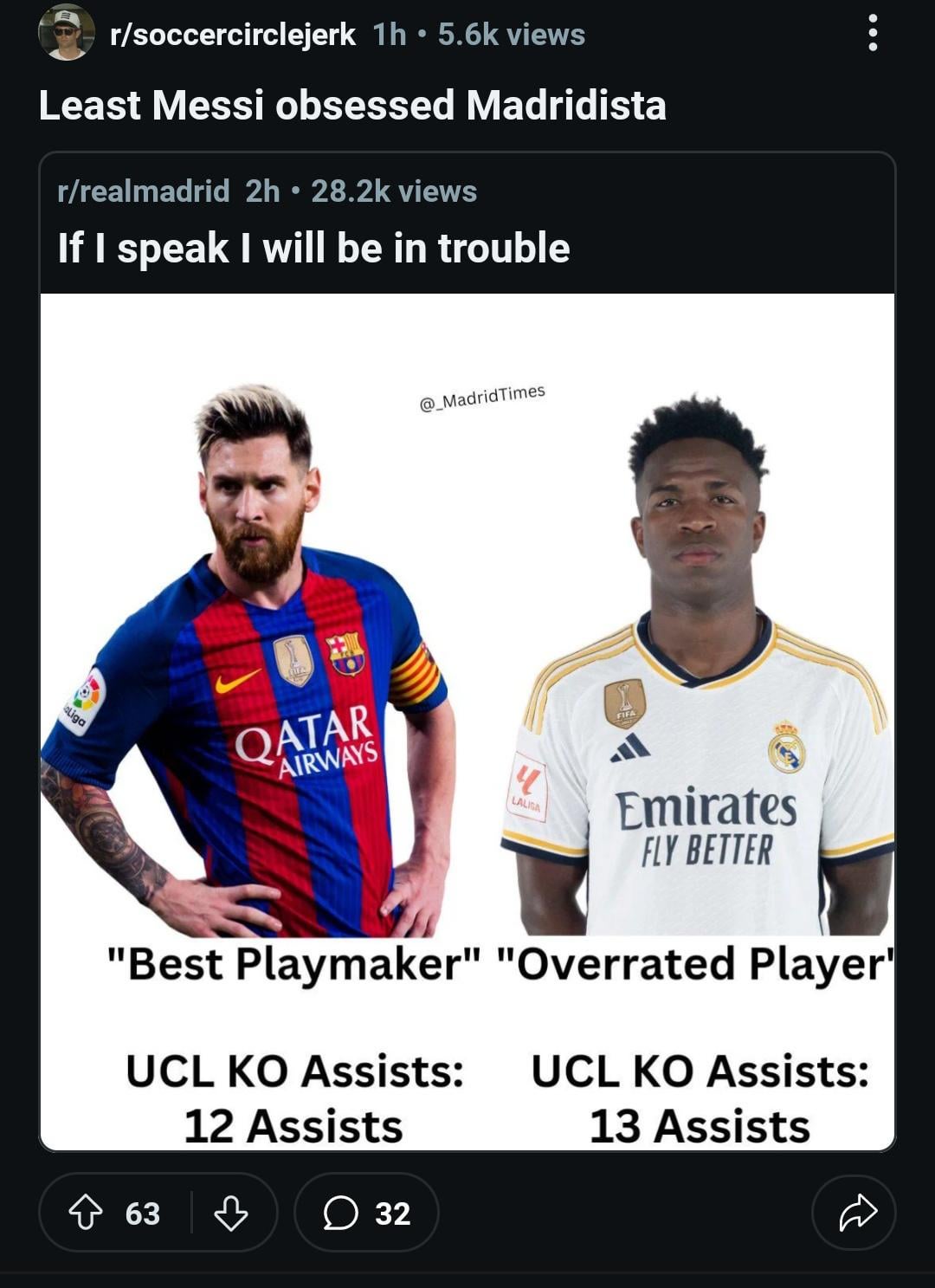 r/Soccercirclejerk is the refuge for fans of all teams who are traumatized by Real Madrid.