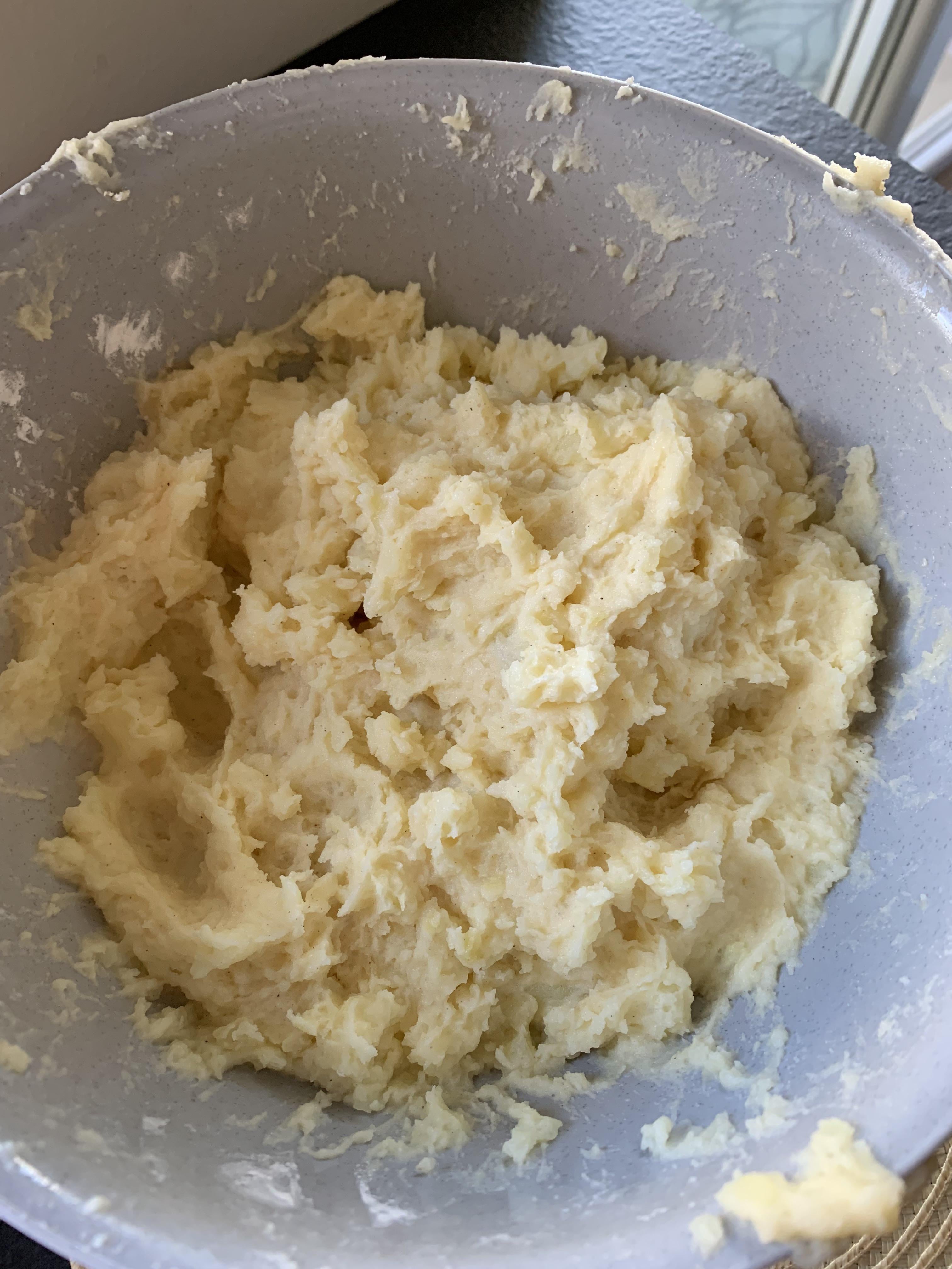 Mehl oder Stärke dazu und den Teig mit nassen/feuchten Händen formen. Kartoffelteige sind (eigentlich) immer klebrig