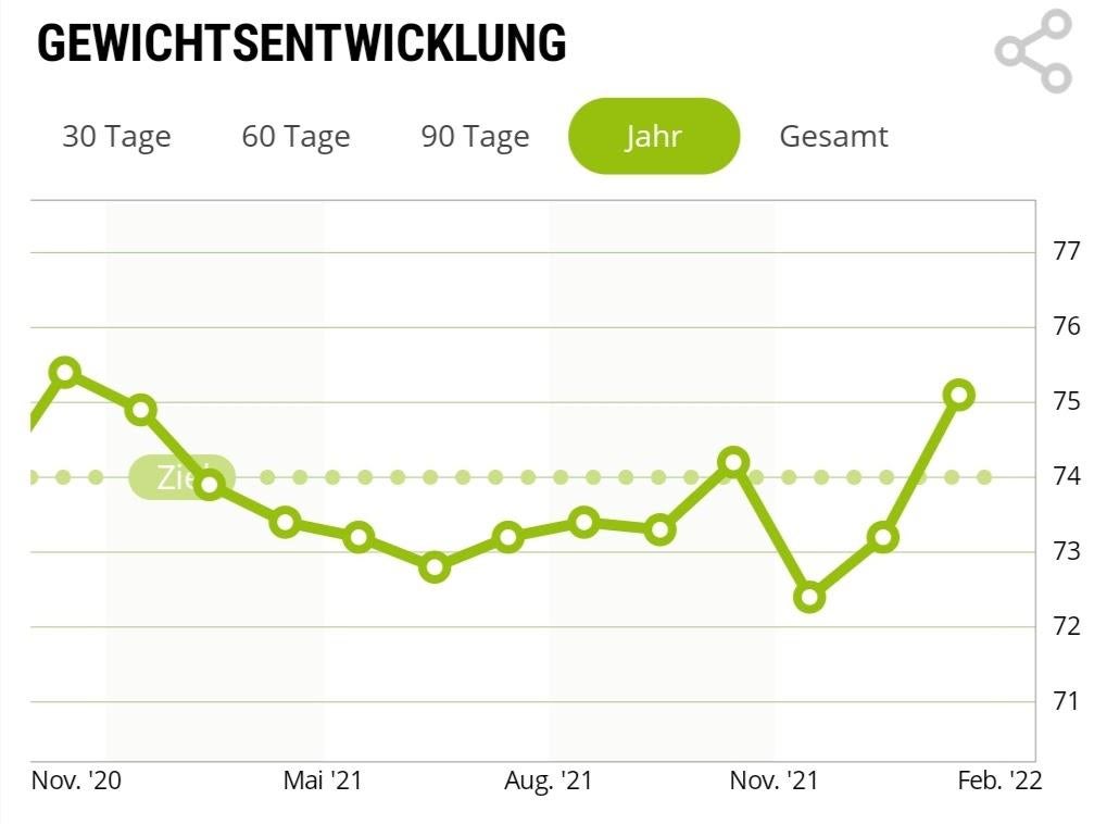 Die Abstände zwischen den Monaten größer, die Abstände zwischen den Kilos kleiner, und fertig, kurve ist Flacher.