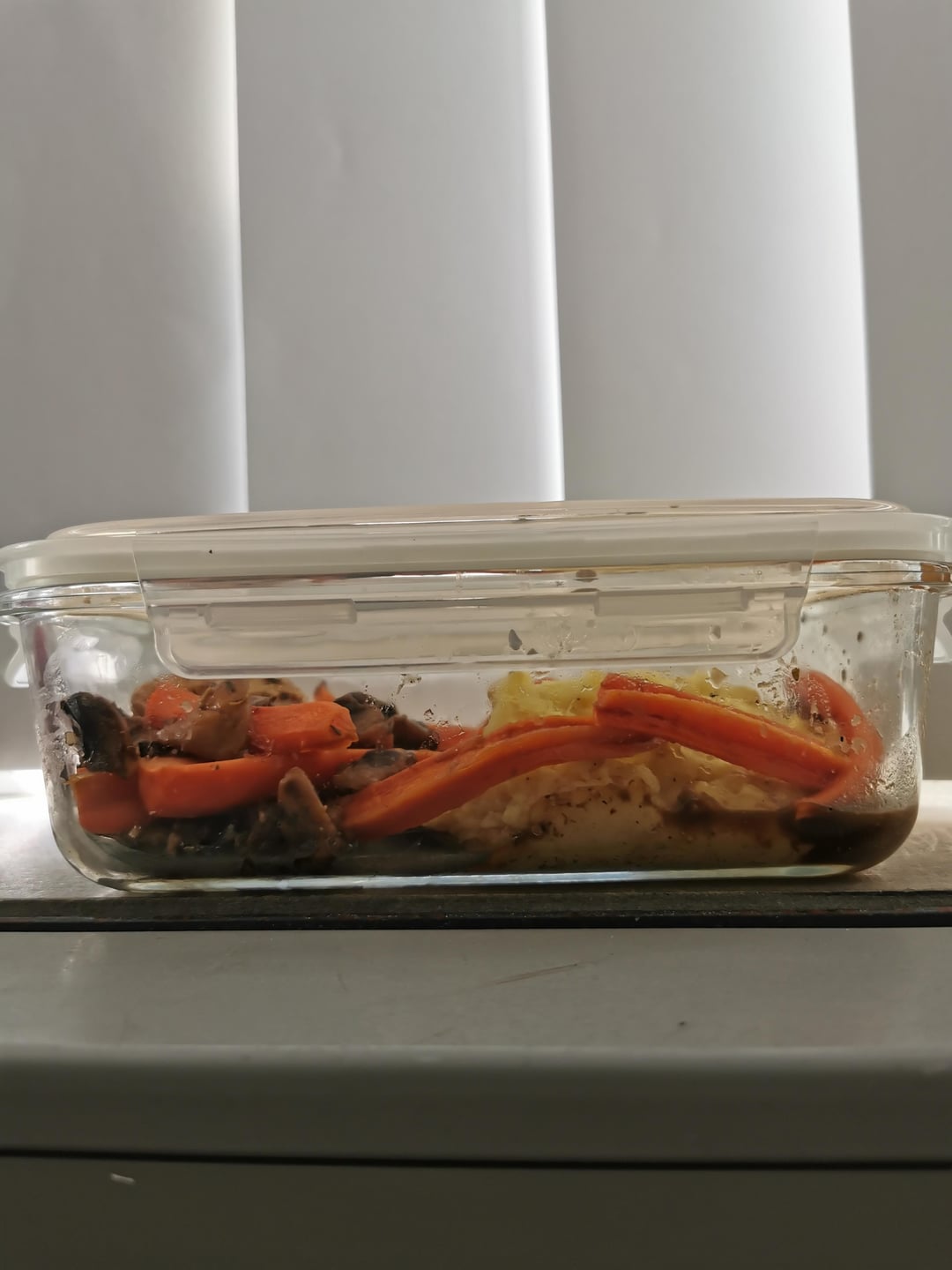 Mealprep KW 20 (Balsamico Pilze+Hähnchen+Kartoffelbrei) by A_Students_Meal_Prep Tags:Essen machenKochen 1 comment Moin, diese Woche relativ langweilig. Hat zwar gut geschmeckt, aber nichts besonderes. Sind Pilze immer so teuer oder hätte ich einfach nicht ausßerhalb der Saison kaufen sollen? Schönes Wochenende [Instagram](https://www.instagram.com/p/C7EFsu8N0FP/?utm_source=ig_web_copy_link&igsh=MzRlODBiNWFlZA==) -Kartoffeln(1496 g) schälen, grob würfeln und kochen -Karotten(759 g) in Stifte schneiden und mit Honig(20 g) mischen und backen -Pilze(800 g) vierteln -Knoblauch(35 g) hacken -Hähnchen(1000 g) grob würfeln -Knoblauch, Balsamico Essig(120 g), Sojasauce(60 g) und Zucker(40 g) vermischen (Thymian) -Kartoffeln pressen und mit Butter mischen (S+P, Muskat) -Hähnchen braten und aus der Pfanne nehmen (S+P) -Pilze anbraten -Sauce zufügen und aufkochen -Hähnchen zugeben und vermischen Leave a ReplyYou must be logged in to post a comment.