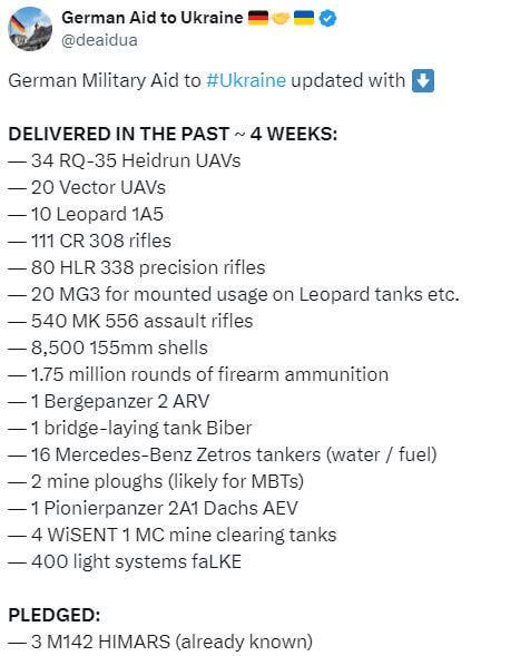 New German delivery: 10 Leopard1A5, Bergepanzer 2, 4 WISENT 1 MC mine clearing tanks, 1 Egineering Tank 2A1 Dachs, 45 UAVs + more! New Pledge: 3 HIMARS.