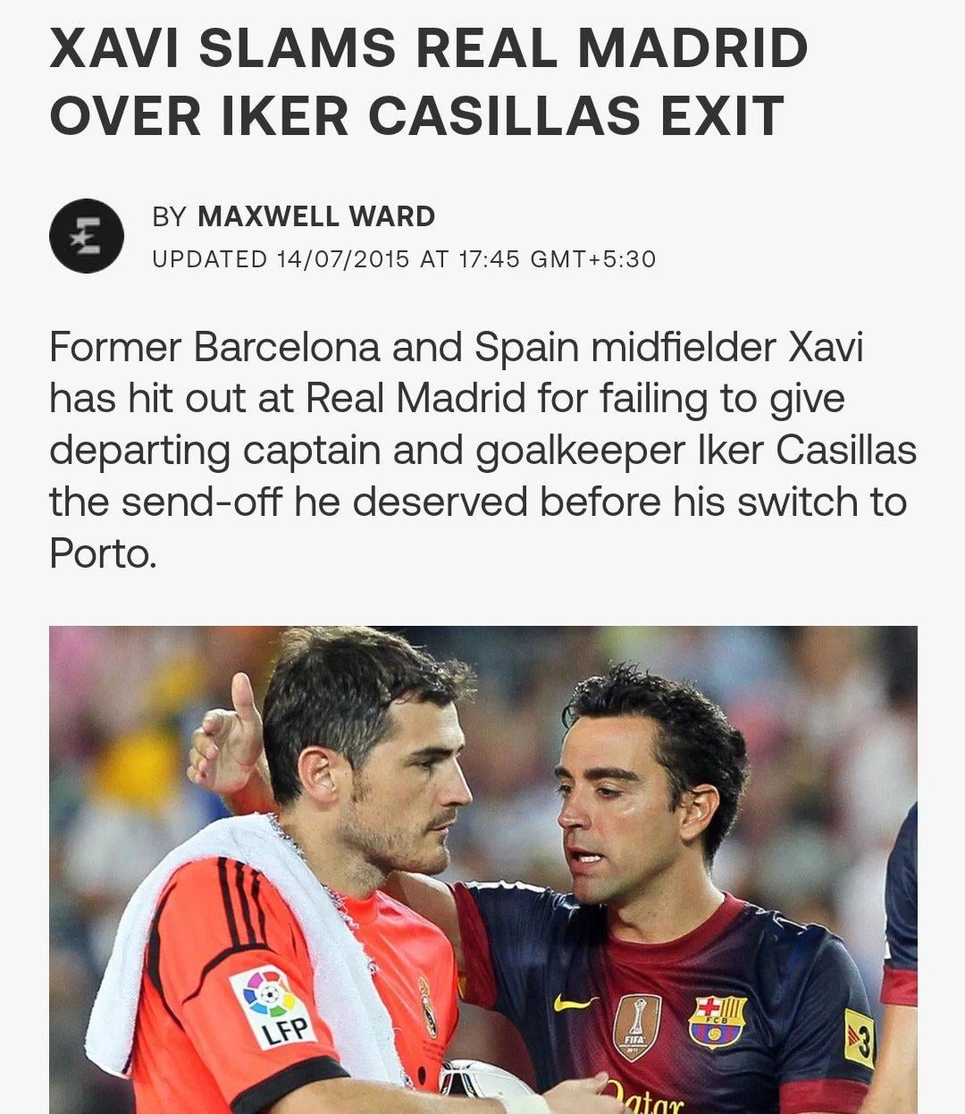 Tbf the way Casillas was sent off was disgusting. What Barca did to Xavi after begging him to stay is a circus.