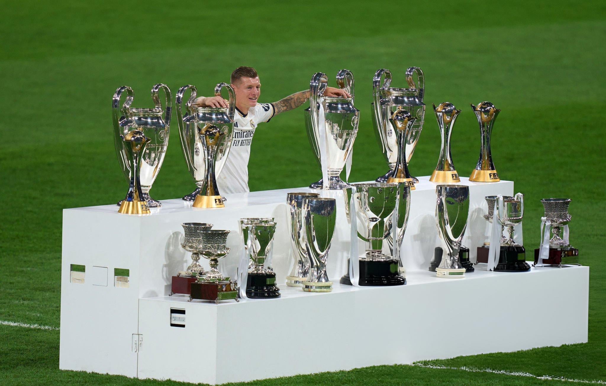 Toni Kroos and the 22 trophies he won with Real Madrid by FergieBall_FC Tags:FootballHala MadridLa LigaReal MadridReal Madrid CFSoccerspainSpanish Soccer 5 comments Now he only needs to win UCL and HEADBUTT someone in EURO like Zidane to retire like a BOSS By trophy breakdown: * 4 UEFA Champions Leagues * 5 FIFA Club World Cups * 4 UEFA Super Cups * 4 La Ligas * 4 Supercopas de España * 1 Copa del Rey Hopefully, he’ll win his 5th Champions League and his 23rd trophy with Madrid. 🙏🙏 The man has absolutely won it all bar the Euros. He gets one more chance this summer so we’ll see what happens. (Either way he has the WC) We got to witness all of this 😍 Le falta una Hala Madrid! Leave a ReplyYou must be logged in to post a comment.
