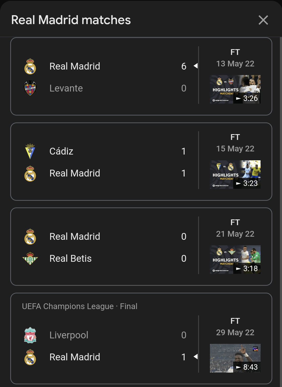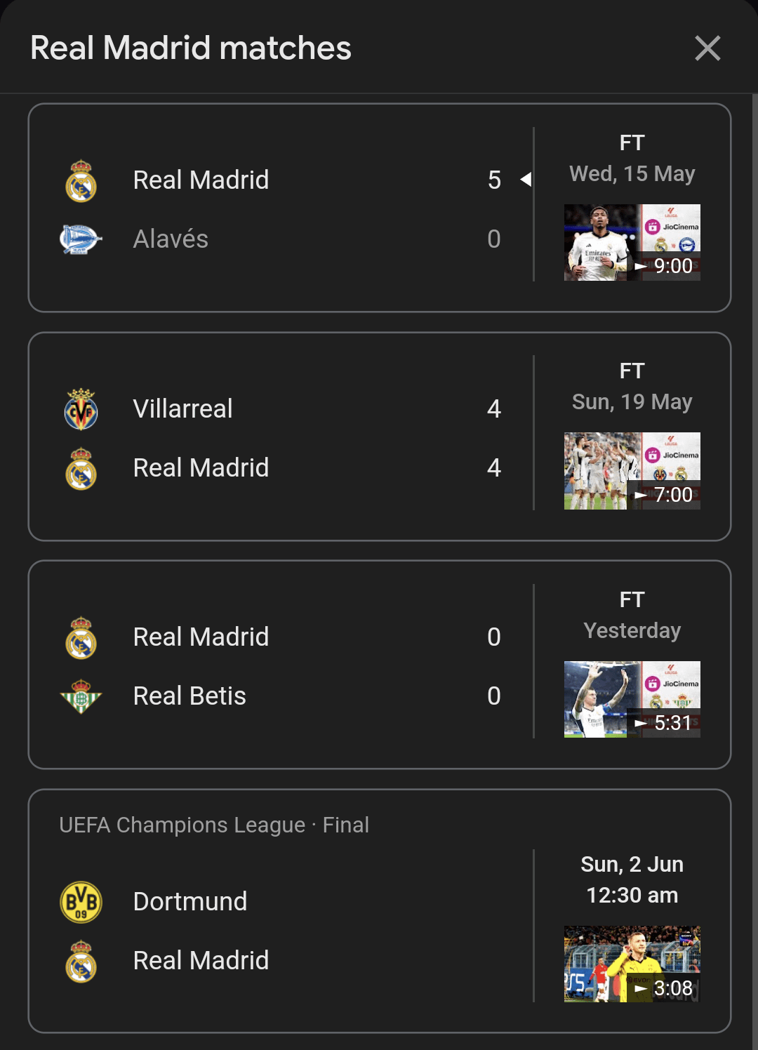 3. Pretty cool and very well signaled coincidence! Madrid’s last matchups in seasons 2022 and 2024 were against Betis both ended in a 0-0 draw, right before the UEFA Champions League final. The connection sure adds an exciting twist to the upcoming final.