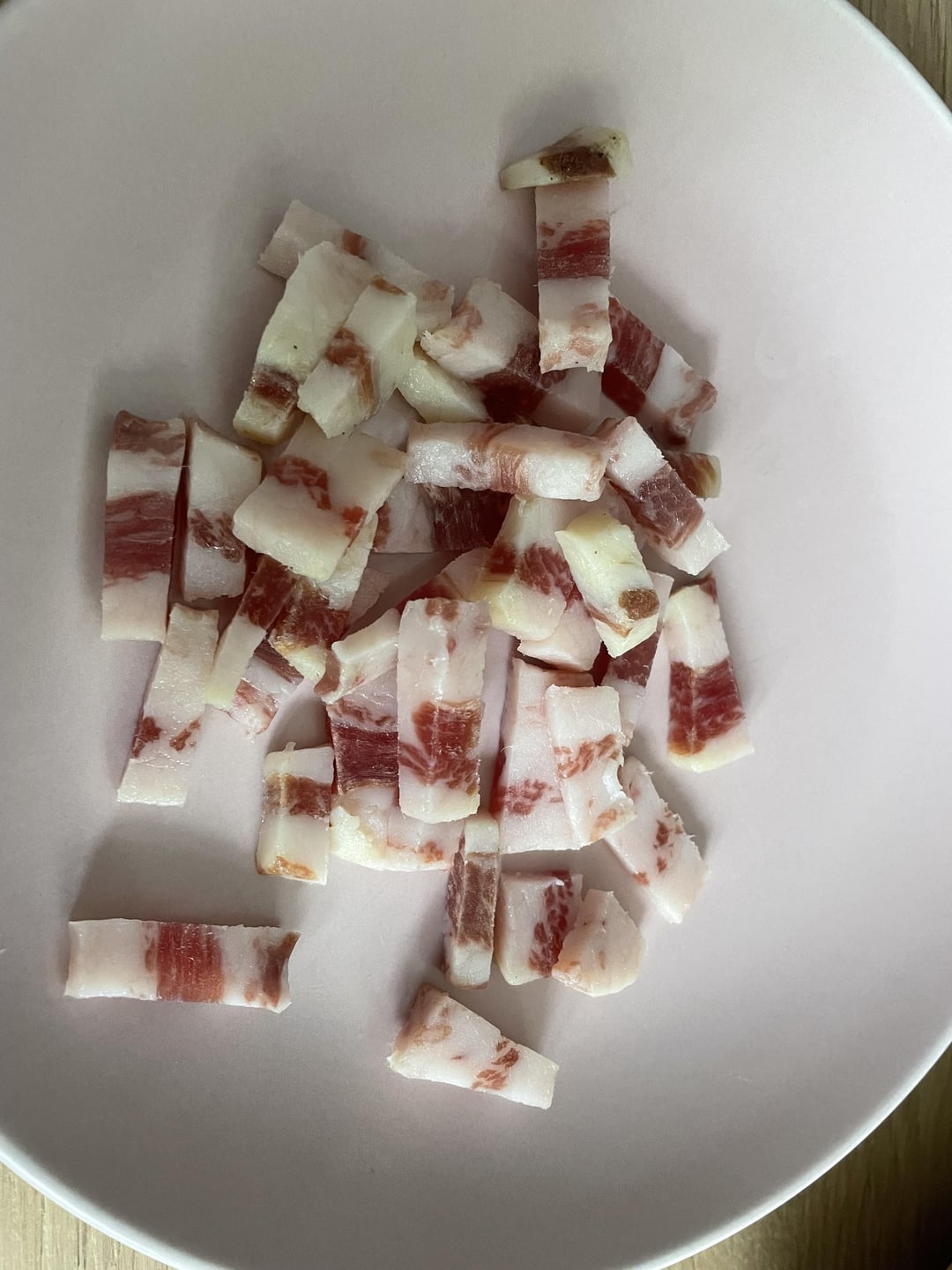 Cut Guanciale as you desire.