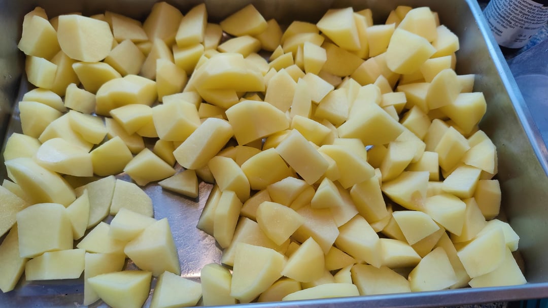 Das ganze bei 180 Grad Umluft ca. 20 Minuten backen, bis die Kartoffeln durch sind. Gabeltest empfohlen!