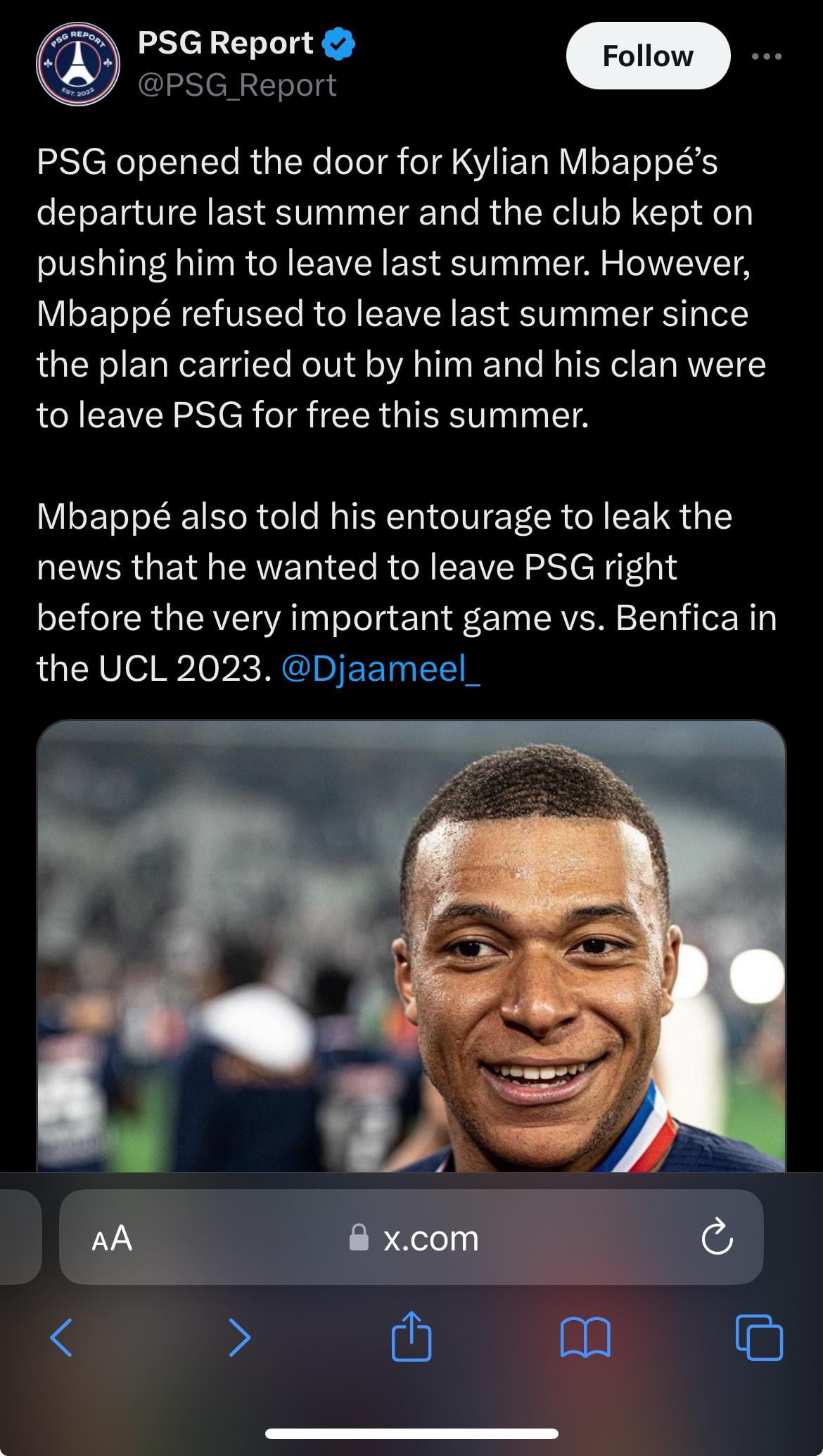 More: Mbappé also told his entourage to leak the news that he wanted to leave PSG right before the very important game vs. Benfica in the UCL 2023