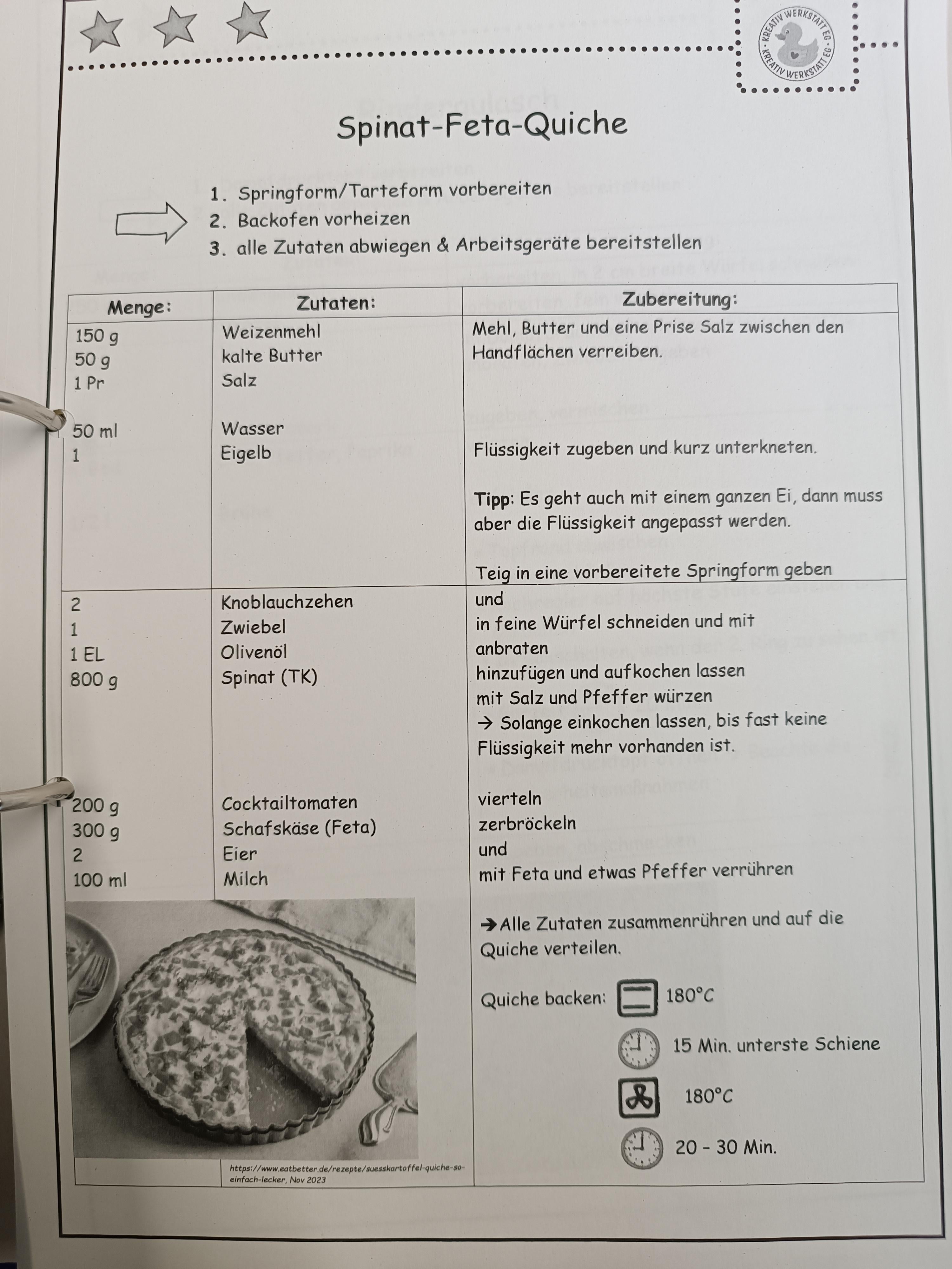 beim teig steht alles bei der zubereitung dabei, unten musst du quasi immer die zeile fertig lesen “2 knoblauchzehen und 1 zwiebel würfeln und mit 1 el olivenöl anbraten” usw. ka is sau dumm formatiert.