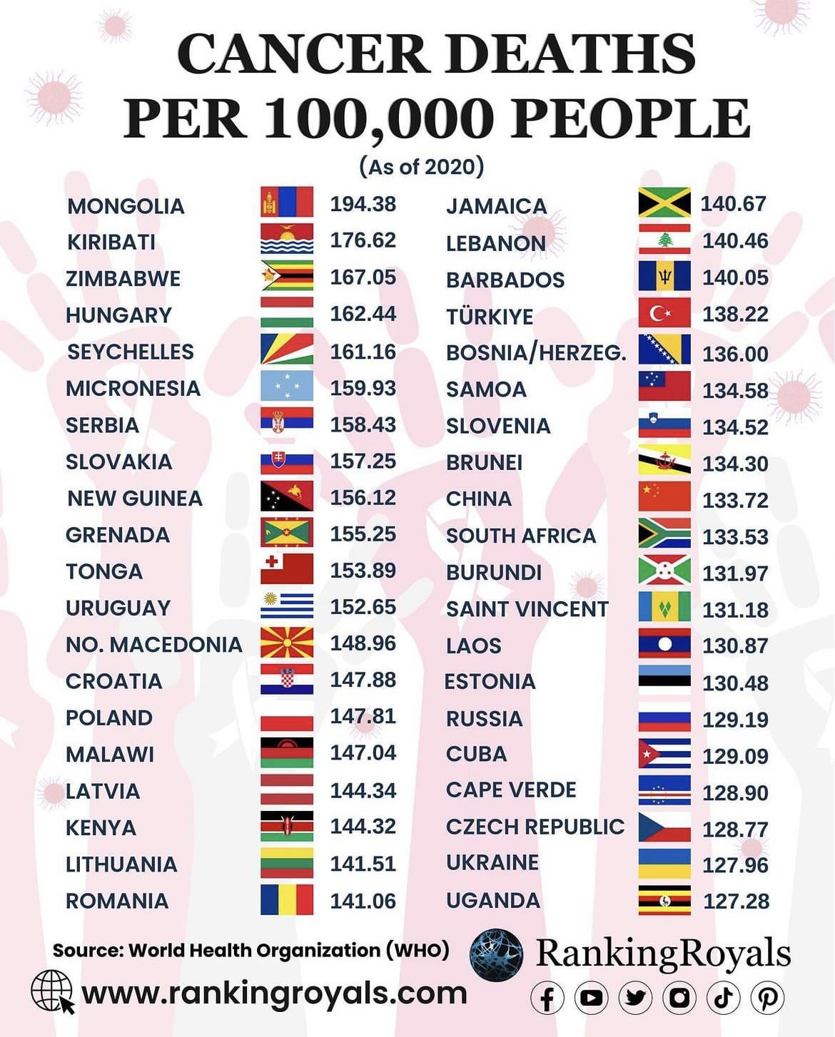 ak si pozries statistiku vyskytu rakoviny, dostanes uplne iny zoznam