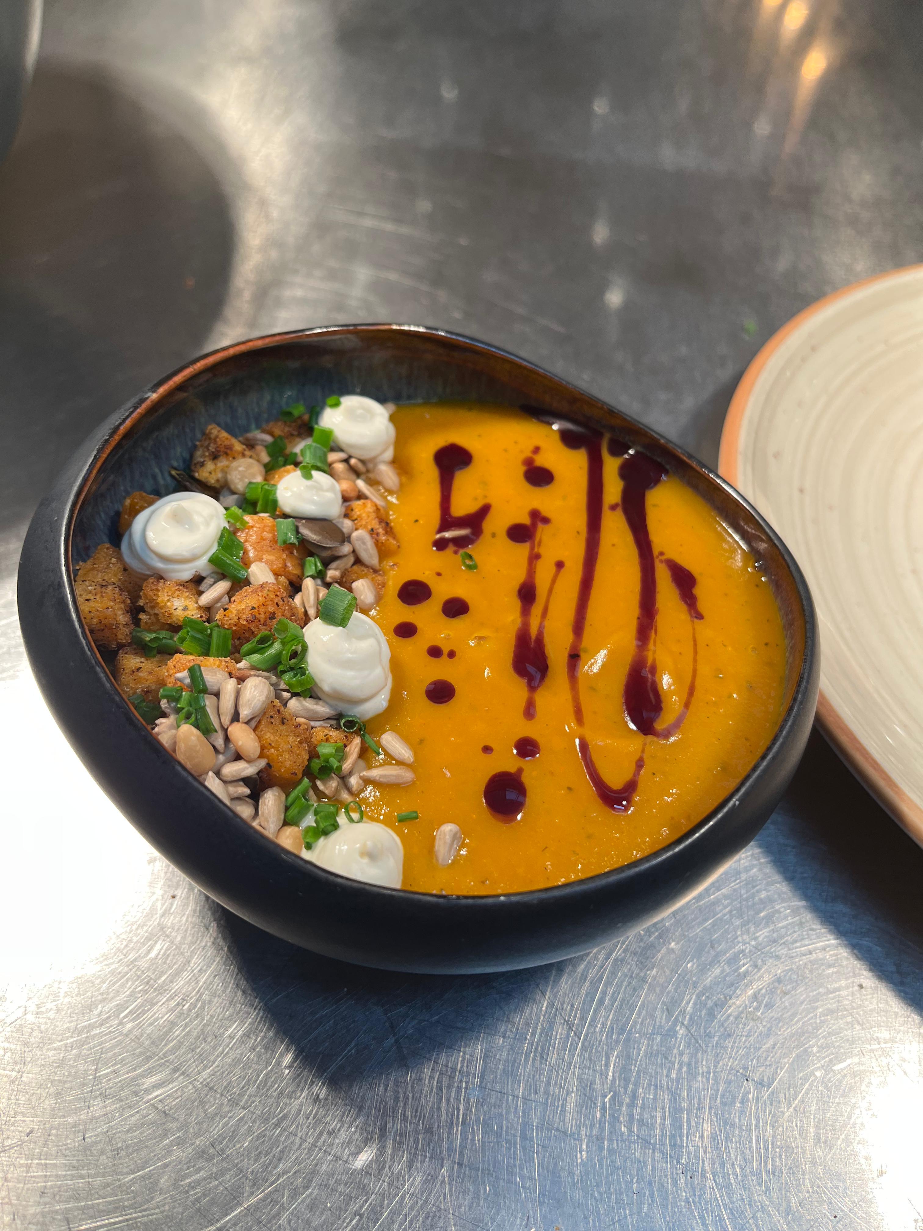 Hey bin Kalia 19 jahre alt und Kochazubi 😇Was haltet ihr von der anrichteweise meiner Kürbissuppe ? 😊 lasst es mich wissen ❤️