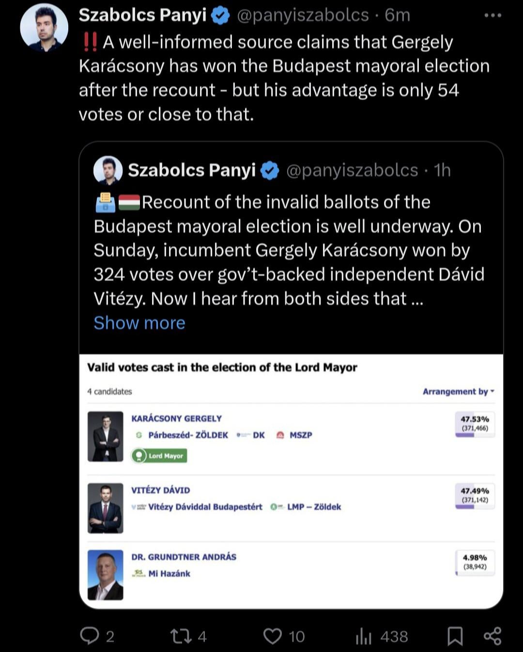10. Well-informed source = index? Ez a poszt előtt negyed órával lett kirakva hogy az Index infói szerint 54 a különbség. Ha az Indexet tartja ennek a forrásnak akkor azért várjunk még.