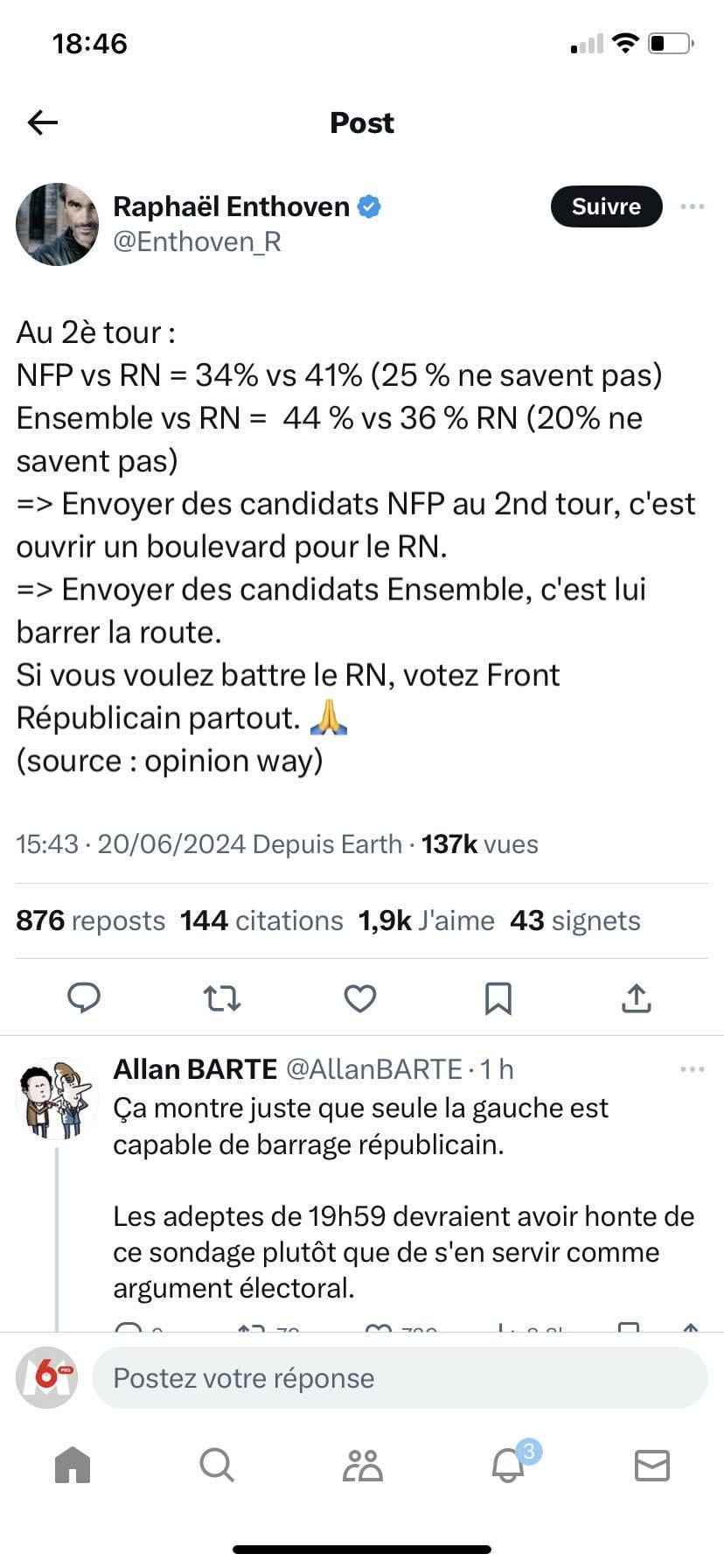 Ça montre que le barrage républicain ne marche quand que c’est la droite/le centre contre l’extrême droite