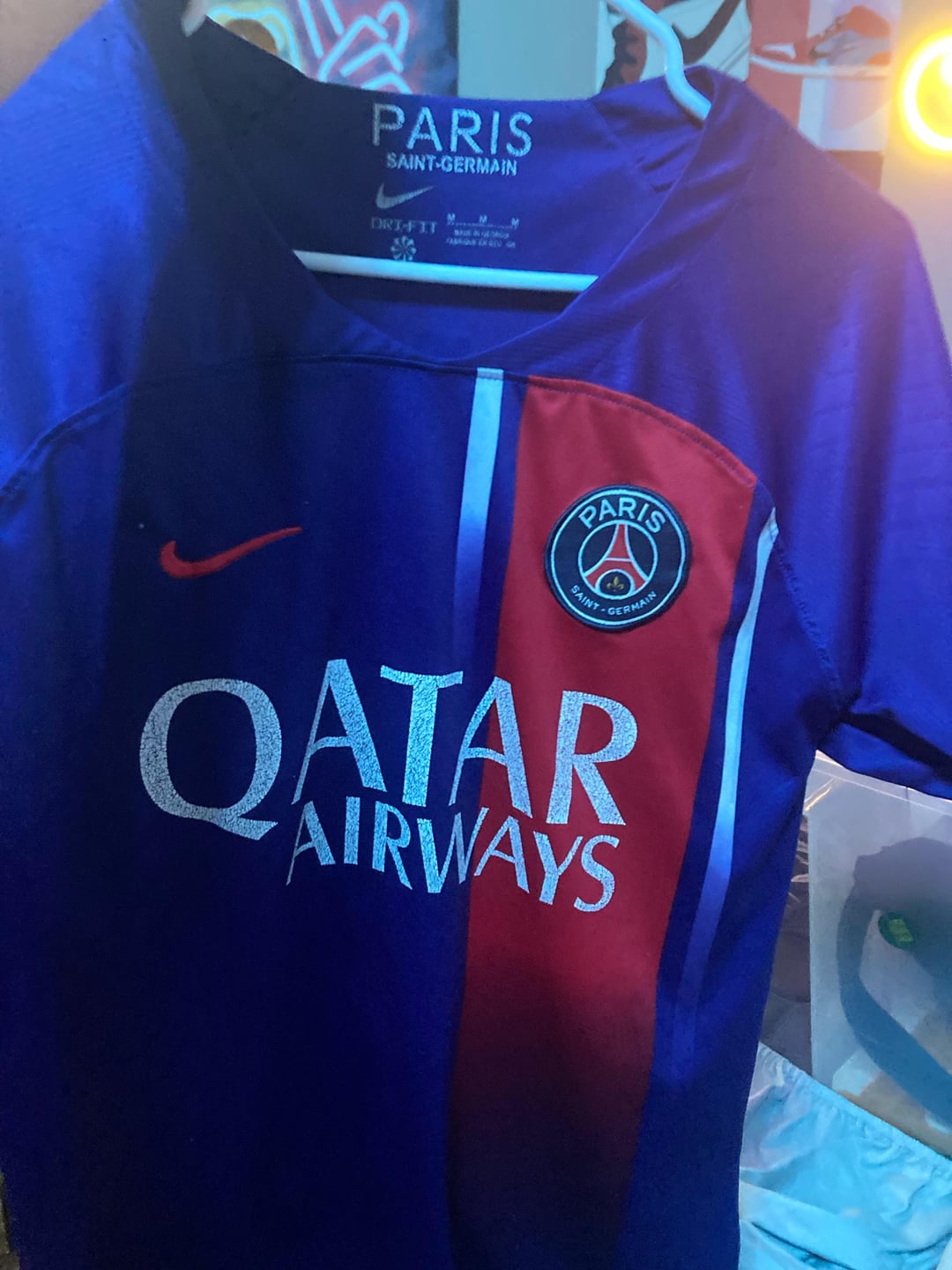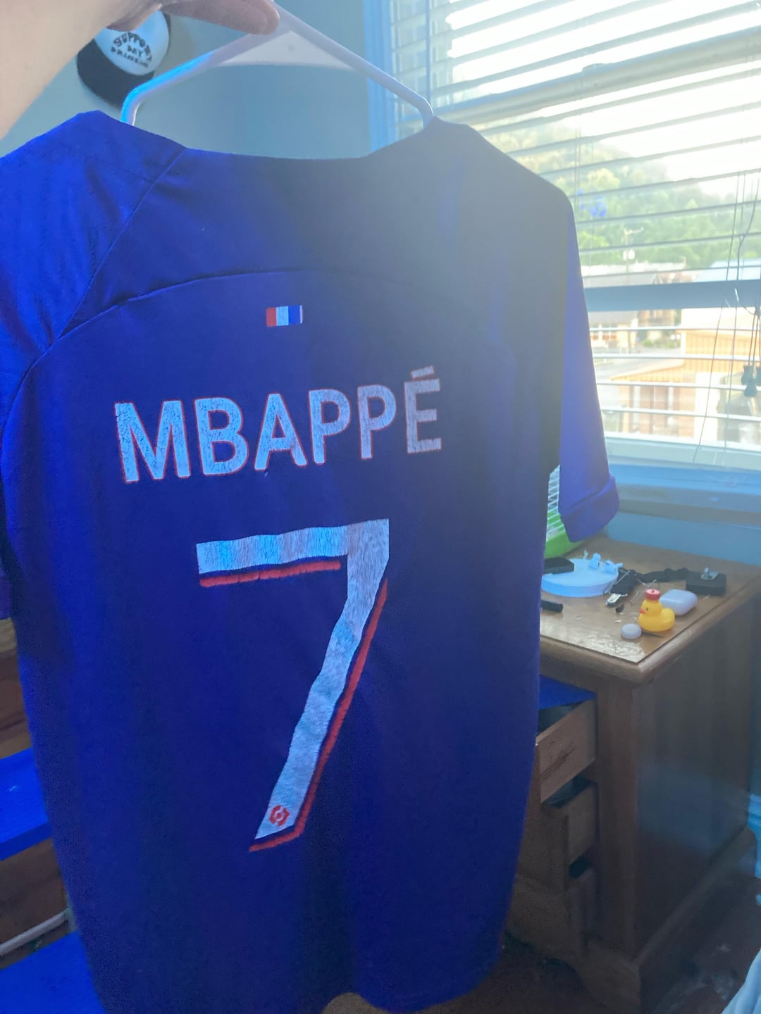 1. No I don’t think it’s real. It is this years jersey and the font of the name Mbappé doesn’t match.