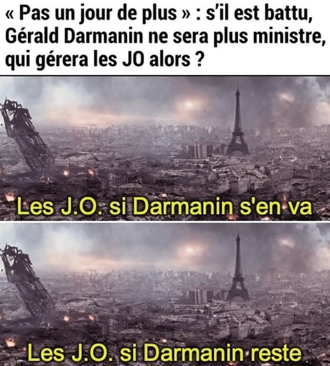 @memespolitiques sur Instagram by MeuhMeuh62 Tags:Actu memesfranceMemes 3 comments Ça ne sauvera pas les JO, mais j’espère tout de même qu’il sera battu. Je crois voir un incendie en plus dans le coin bas droite dans la photo du bas, la question elle est vite répondue Il manque du caca dans les deux cas(ca). Leave a ReplyYou must be logged in to post a comment.