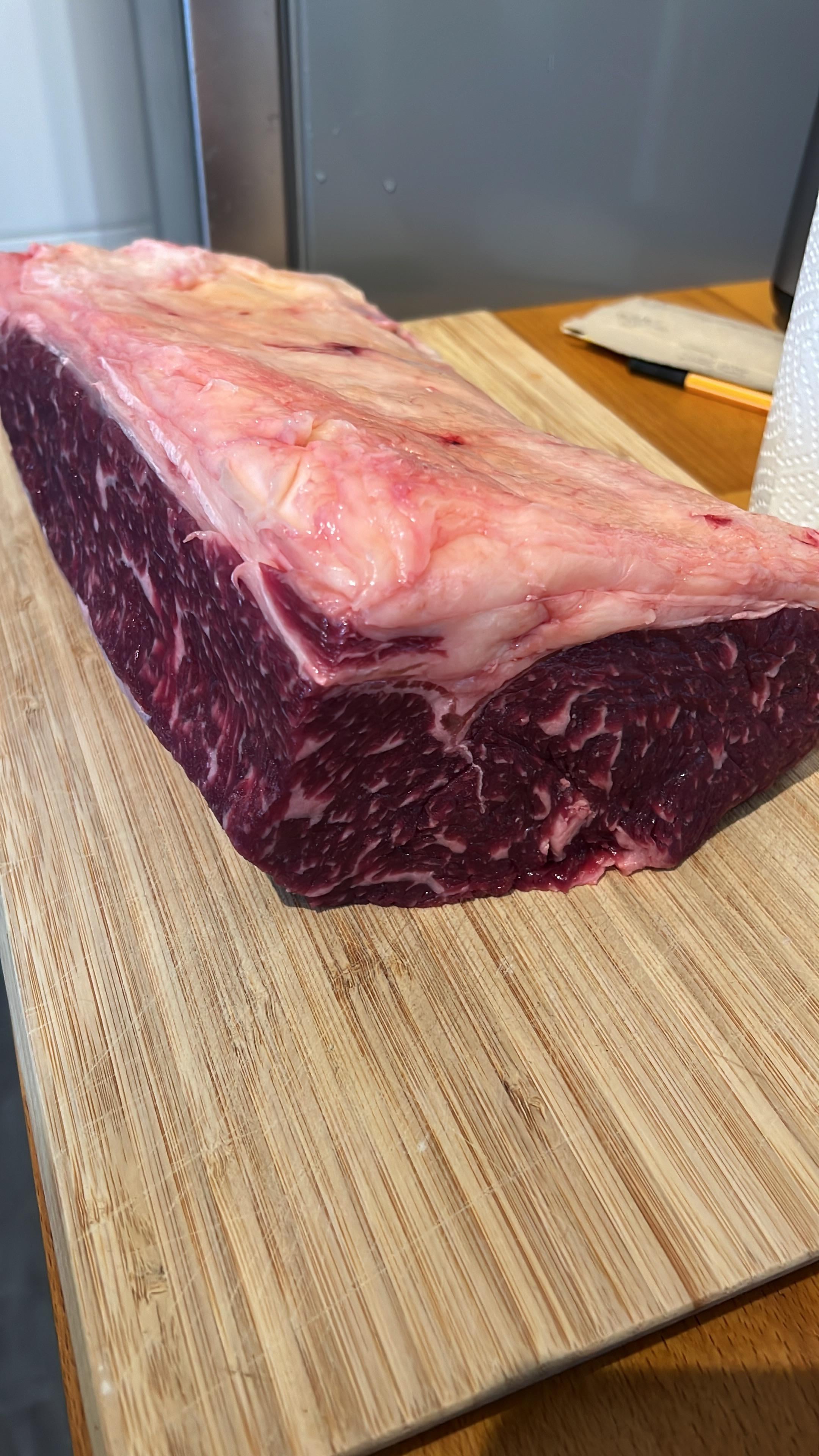 wir haben folgendes Stück Fleisch (als Roastbeef ausgeschrieben, 60€) bei der Metro gekauft. Dann in ca. 2-3cm dicke Scheiben geschnitten und eingefroren. Leider wurden die Steaks nichts, teils sehr zäh und fest (medium Rare).