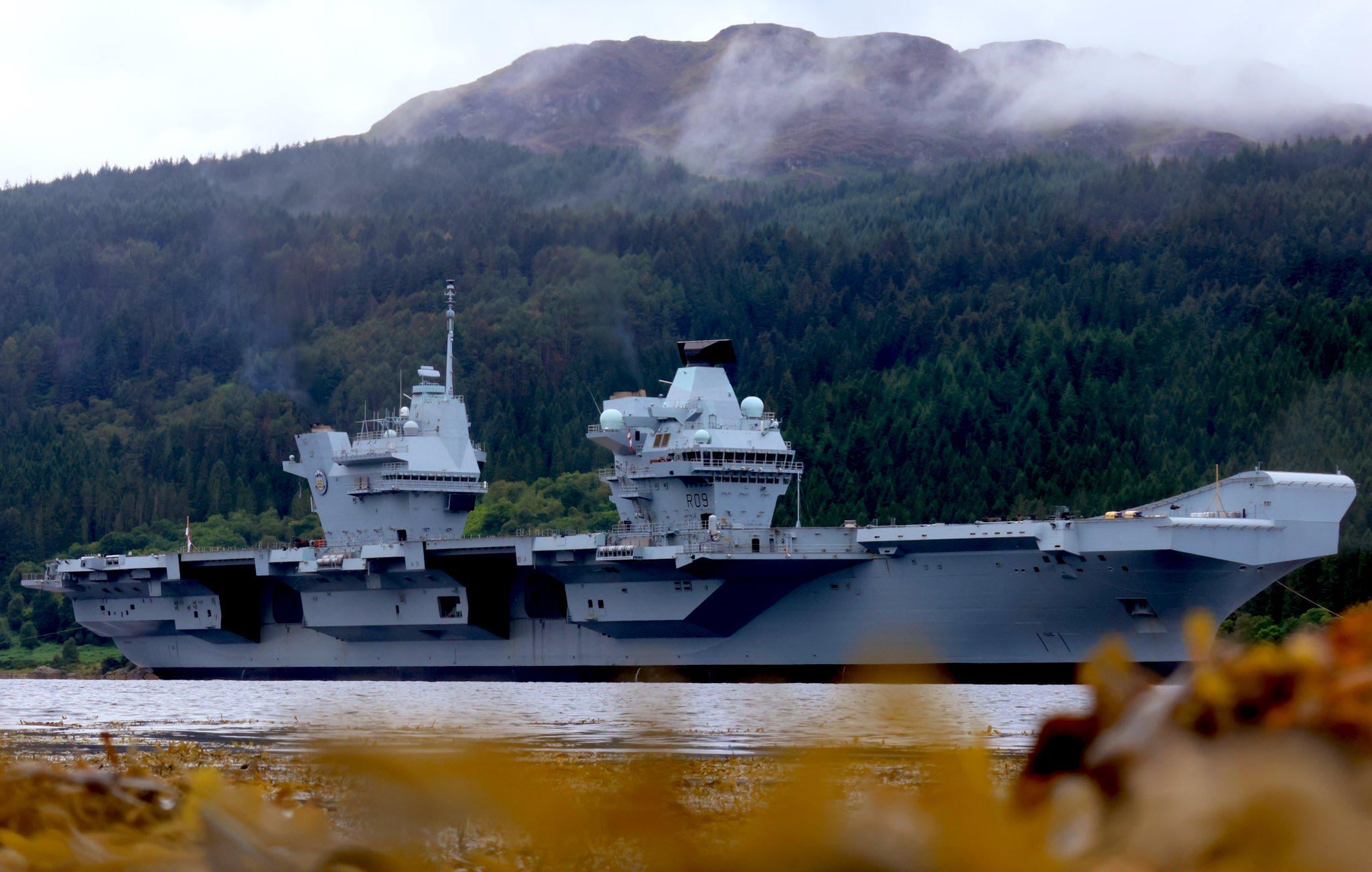 HMS Prince of Wales arrives on Glen Mallan this morning to onload ammunition